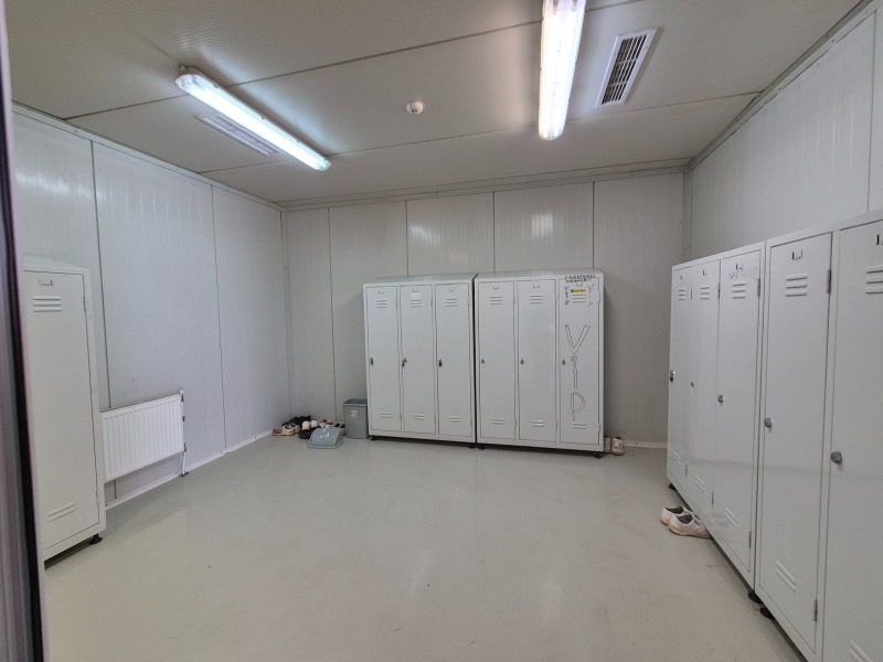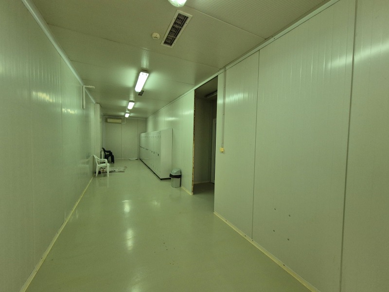 Разпределението е следното: Сутерен на кота -3,90 два резервоара, помпена станция и преддверие, с достъп по рампа от запад, Първо ниво на кота +0.00 приемна зона, включваща складове за суровини и помещение разопаковъчно, основна производствена част, зона експедиция, състояща се от основен склад и обслужващи складове, обслужващи помещения - микробиологична и химична лаборатории, перални помещения, ел.табло, компресорно и котелно и санитарно-битови помещения за персонала; втори етаж, обособен частично на кота +2.70 помещения за администрация (управител, секретарка и заседателна зала), зона за почивка и обяд с кухненски бокс. Подовете в работните и складовите помещения са с шлайфана армирана бетонова настилка с полипропиленови фибри, импрегниран на кота +0,00 с киселиноустойчиво покритие, с холкери между пода и стенните панели в помещенията, в санитарно-битовите и административните помещения - настилка от гранитогрес; стени трислойни панели, частично с гладка мазилка с шпакловка и латекс - в административните и битовите помещения; тавани трислойни панели в работните помещения и окачен таван от минералватни платна в административните и битовите помещения.
