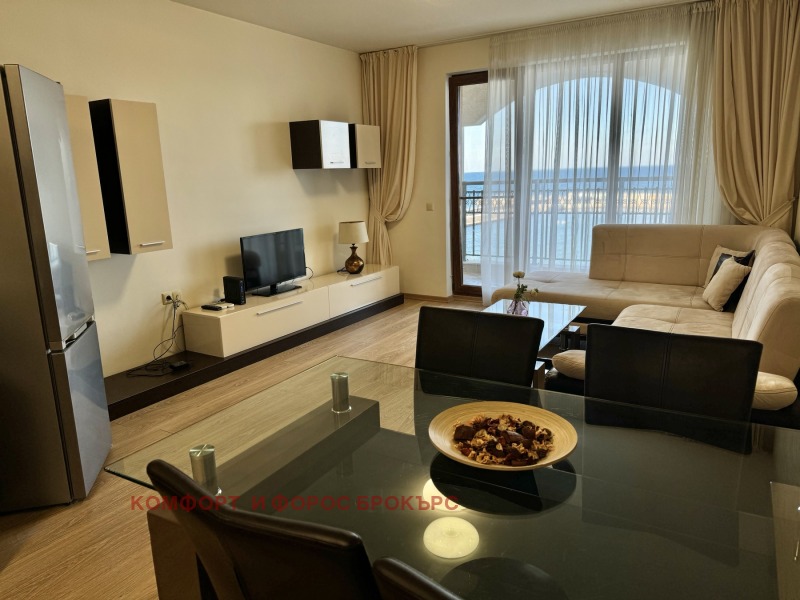 Комфорт-Брокърс отдава под наем двустаен апартамент в района на Кабакум първа линия море. Жилището се намира на трети етаж с разкошна гледка море. Напълно обзаведен и оборудван. Състои се от антре, дневна стая с кухненски бокс, спалня, килер, разкошен балкон към морето. Жилището е изцяло югоизточно разположение. Към имота може да се наеме паркомясто в двора на кооперацията.