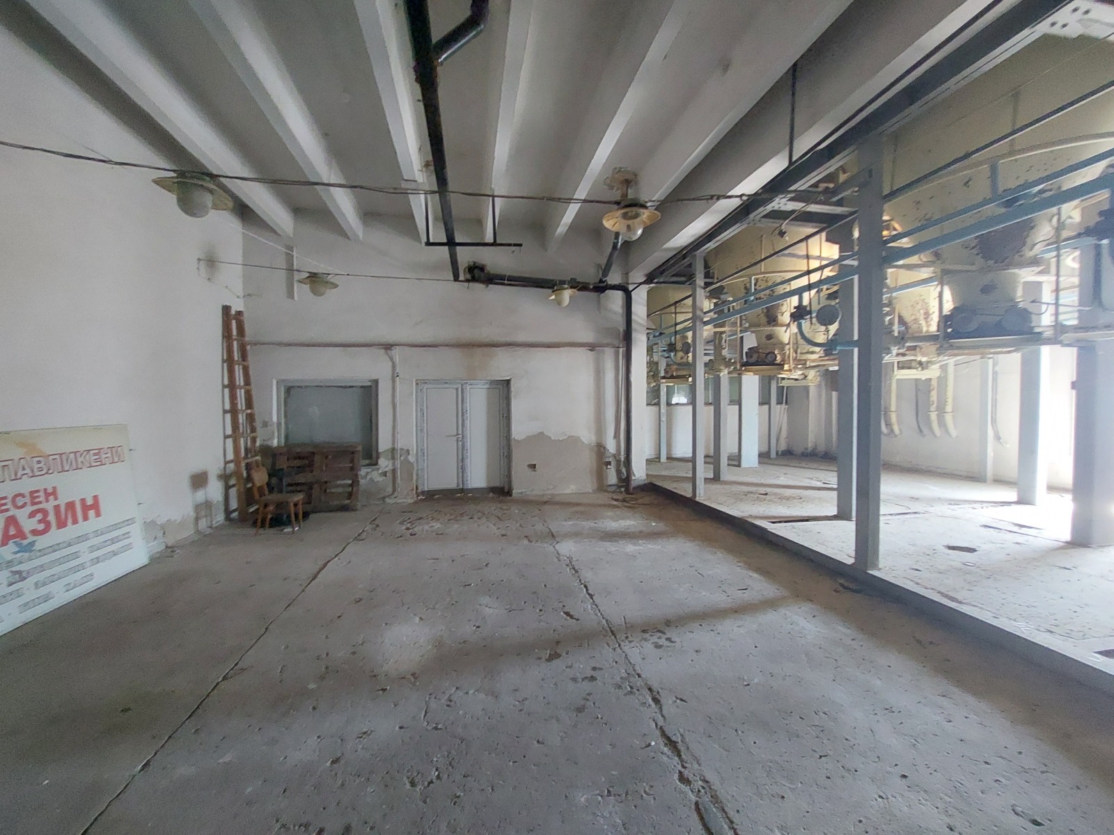 силози, склад, сервизно помещение, фоайе, стълбище, товарен асансьор и четвърти етаж: помещение за силози, работилница, две складови помещения, производствено помещение, фоайе, стълбище, товарен асансьор. Подовете са с настилки от мозаечни плочи, теракот и шлайфана бетонова настилка; стени PVC плоскости, латекс или частична фаянсова облицовка; тавани- латекс или окачени с PVC плоскости. Към сградата има прилежащ УПИ с площ 2950 кв.м, граничещ от три страни в вътрешни пътища с асфалтова настилка. Сградата е подходяща за хлебопроизводство, сладкарски изделия и всякакъв вид производствени и складови дейности, с бетонова рампа по дългата фасада за товаро-разтоварна дейност и товарен асансьор за връзка между етажите.