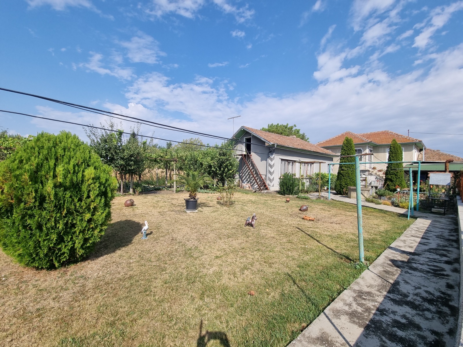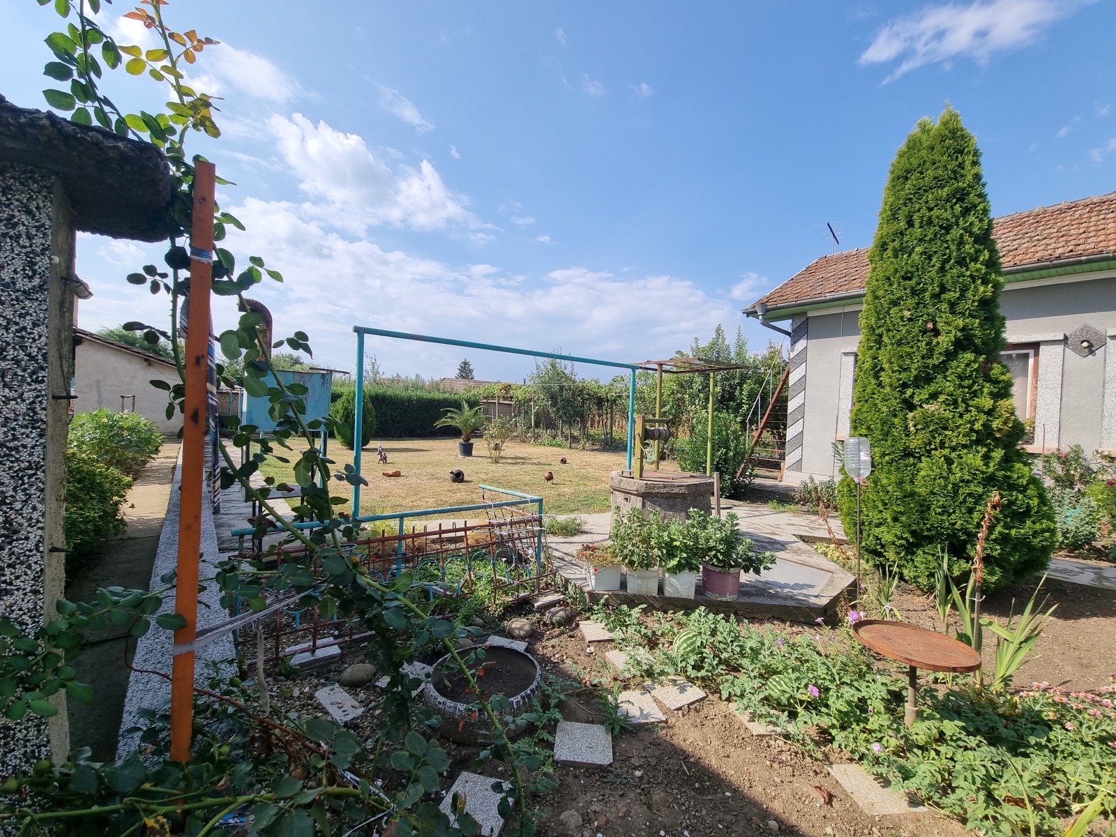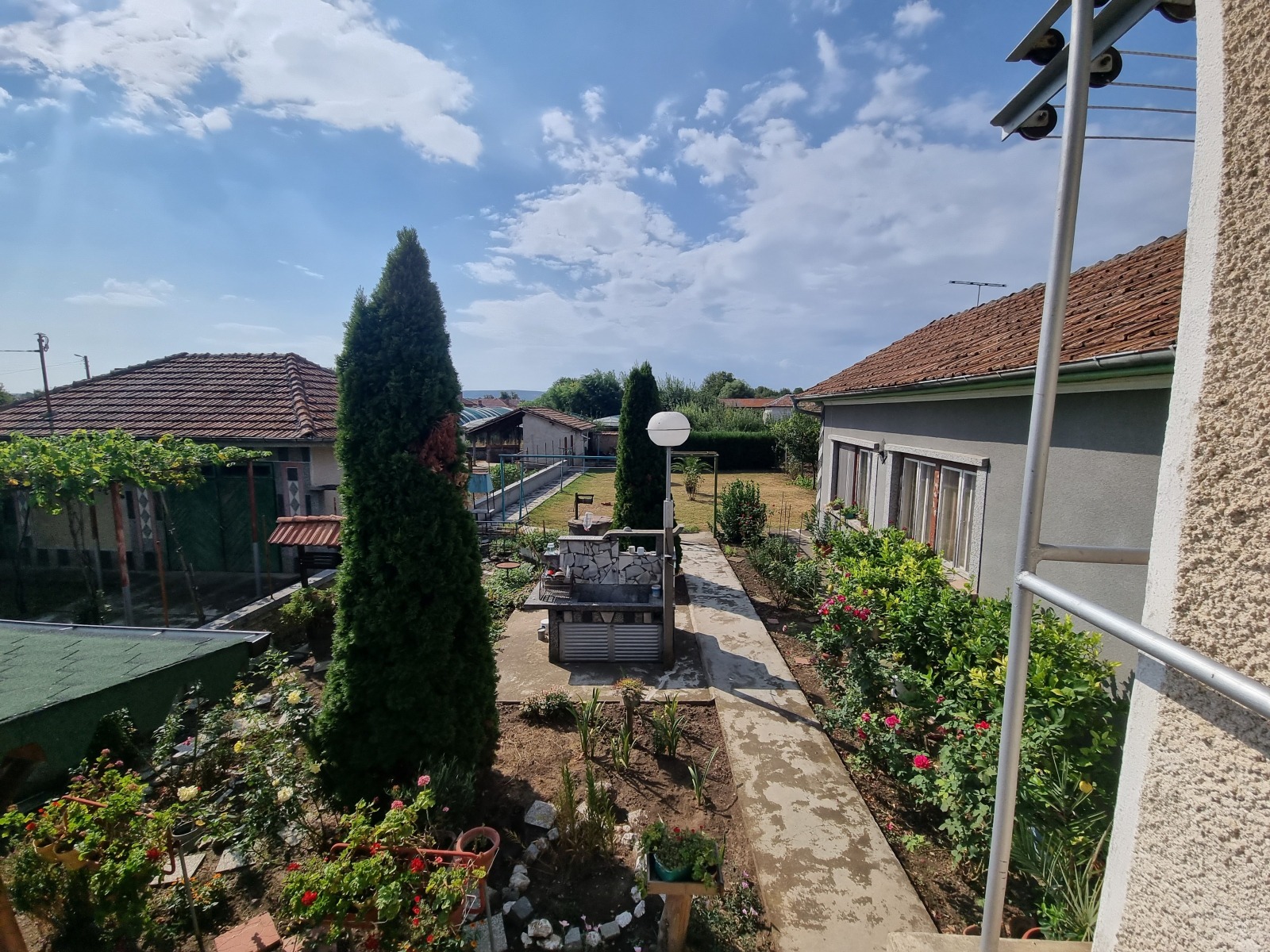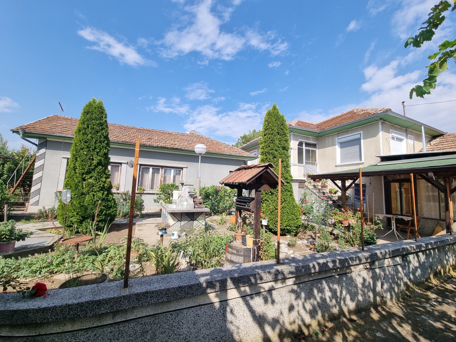 Къща с пристройка, два гаража и големи стопански постройки, разположена в голямо, добре уредено село, на 16 км от гр.В.Търново. Достъпът е по улици с асфалтова настилка. Къщата е масивна, на два етажа, с РЗП 170 кв.м, състои се от: веранда, стая, кухня, три стаи, маза, баня; на втория етаж-антре и три стаи. В пристройката са обособени просторна дневна, кухня и две складови помещения с обща площ 53 кв.м. В дворното място са построени два гаража с площ 20 кв.м и 45 кв.м, масивни стопански постройки с площ 93 кв.м. Дворното място е оградено, добре поддържано, с кладенец, лозе, овощни дървета.