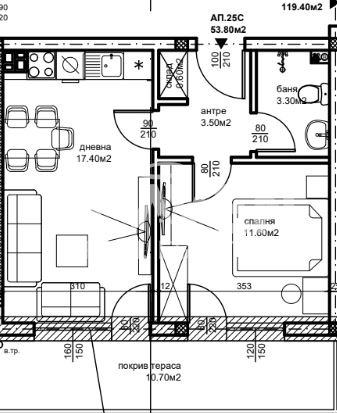 🟡Разпределение: Всекидневна + кухненски бокс, спалня, баня+тоалетна, тераса;