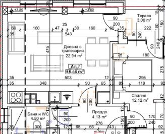 🟡 Разпределение: Всекидневна + кухненски бокс, спалня, баня+тоалетна, тераса, разположени на чиста площ от 58,64кв.м;