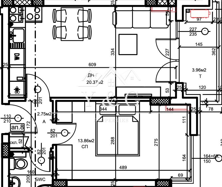 🟡Разпределение: Всекидневна + кухненски бокс, спалня, баня+тоалетна, тераса;