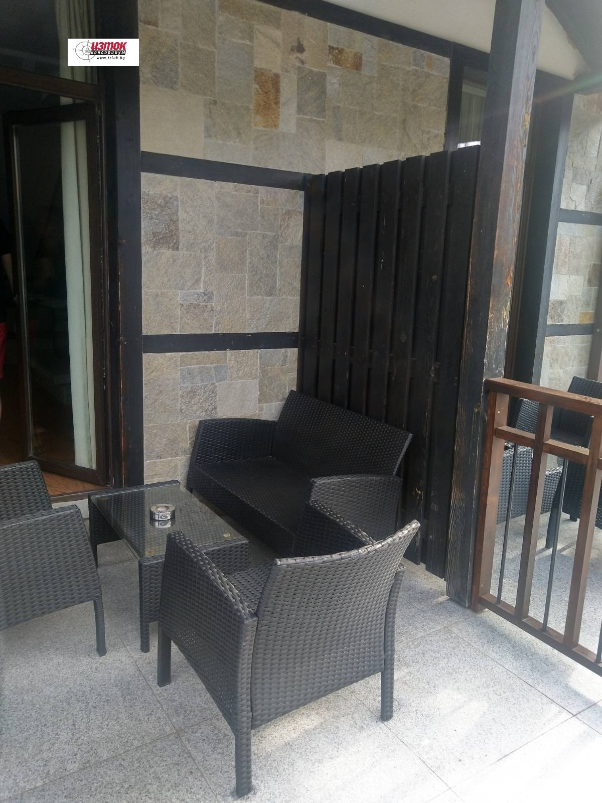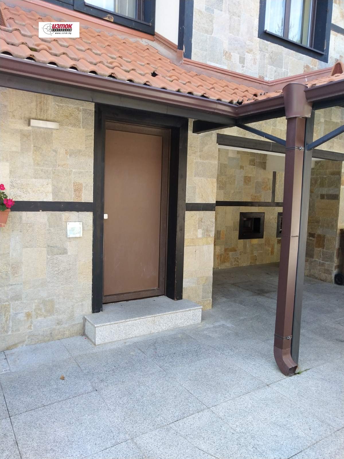 Предлагаме за продажба къща в прекрасния затворен комплекс 'Русковец' в гр. Добринище. Разположена е на три полунива и разполага с преддверие със сервизно помещение и тоалетна, уютна дневна с кухненски бокс с чудесна тераса, две самостоятелни спални и баня с WC. Къщата е напълно обзаведена и готова за обитаване. Отоплението и топлата вода са от термопомпа, допълнителен уют в дневната внася камината. Към къщата има собствено паркомясто.
