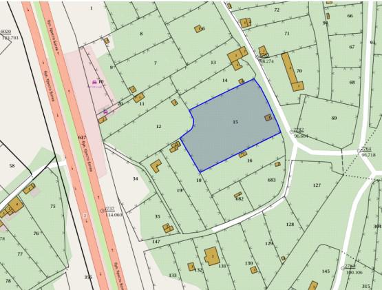 В парцела има стара постройка. Много лека денивелация.