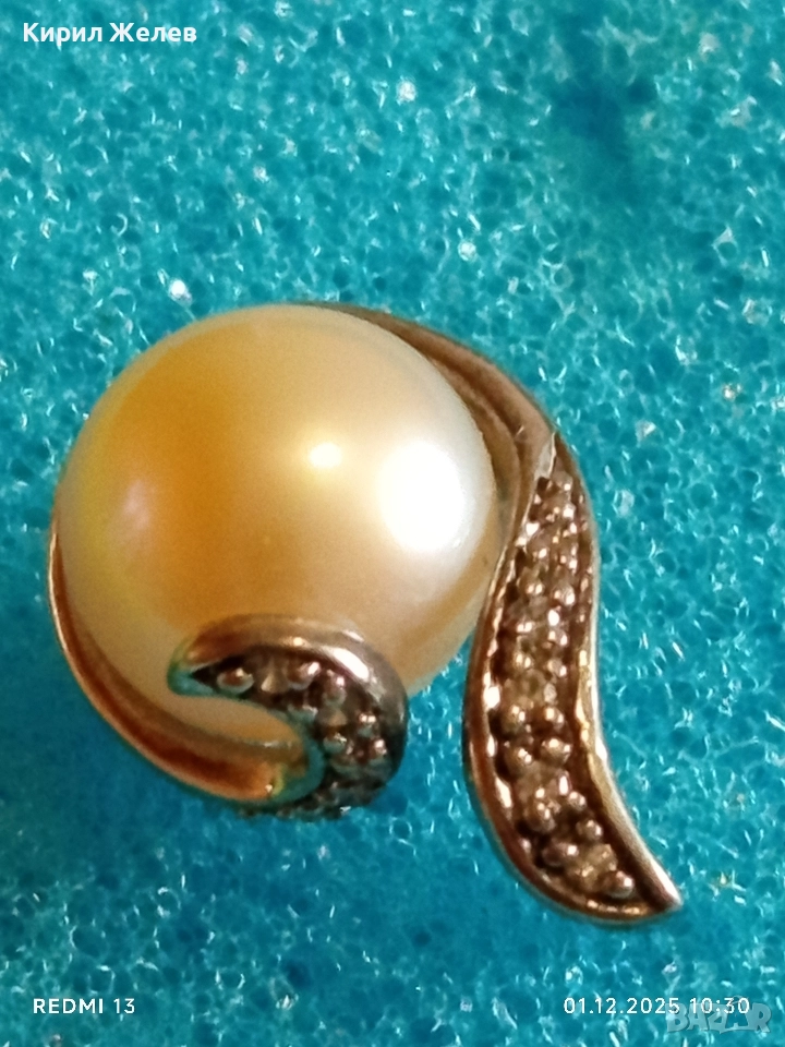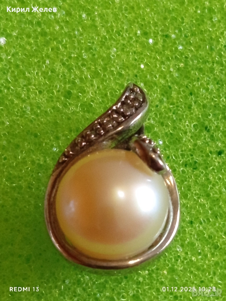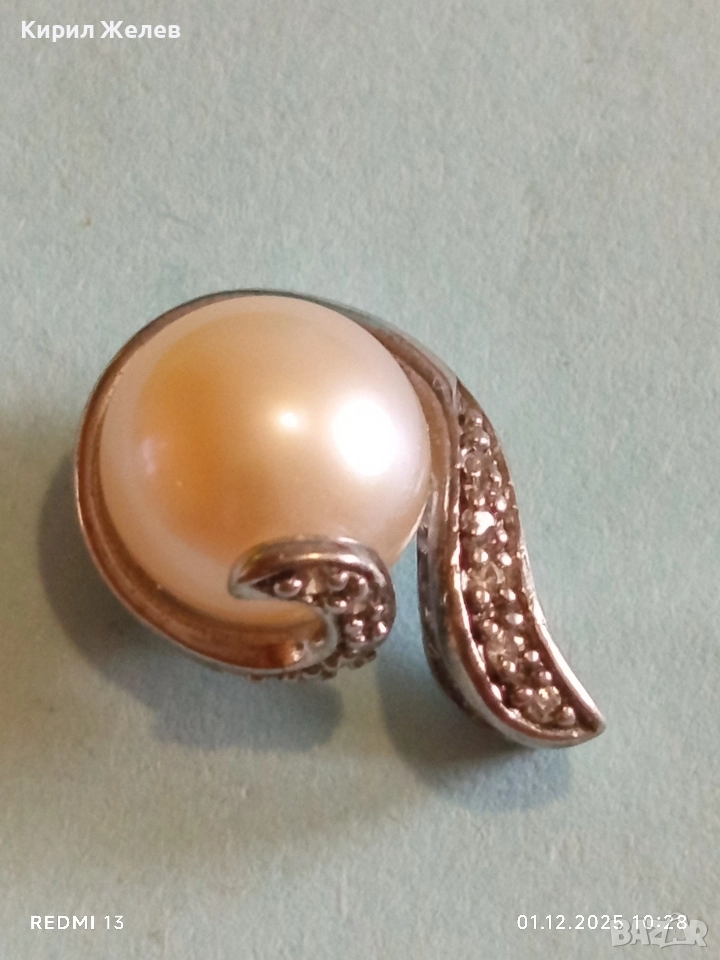 Сребърен медальон с розова перла и инкрустирани кристали стил и елегантност 50965