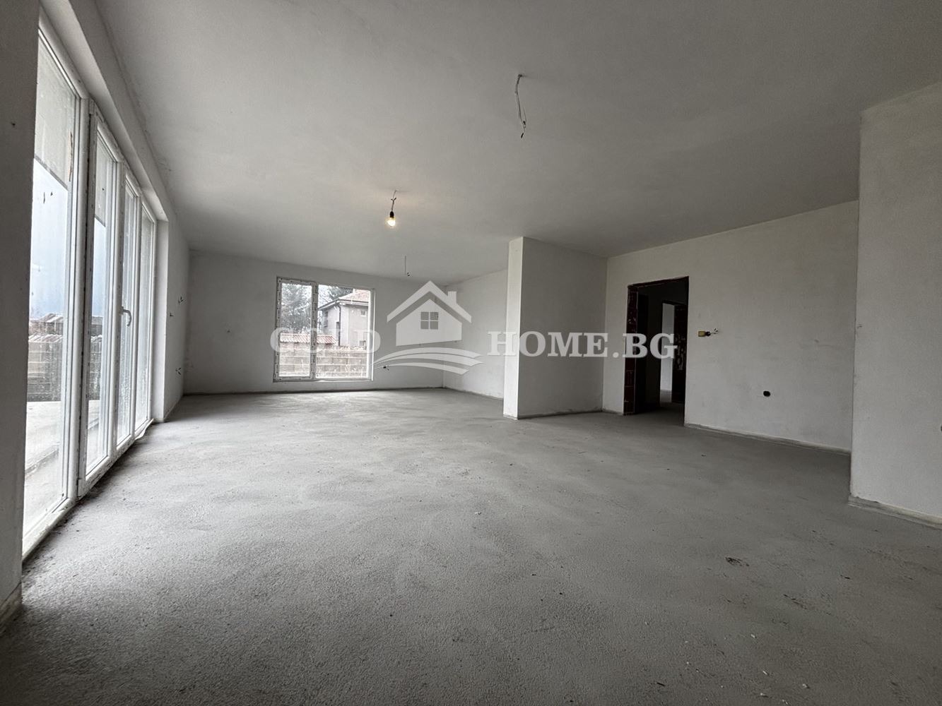 ✔️ Къщата е просторна и се състои от: широк коридор, голяма всекидневна с кухненски бокс - 47 кв.м., 4 самостоятелни спални, 2 бани с тоалетна, като в едната е предвидено перално помещение, веранда, която предстои да бъде покрита, подпокривно пространство, което може да бъде използвано за склад.