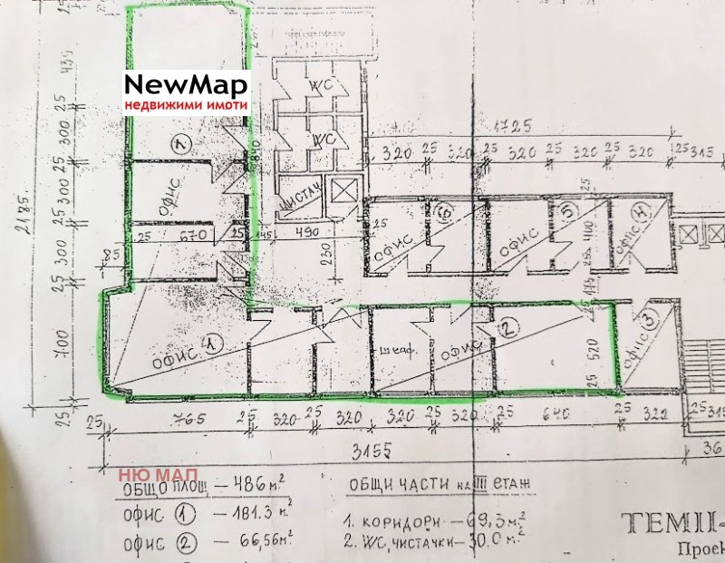 NEW MAP предлага за продажба просторни помещения в офис сграда в идеалния център на Плевен с чиста обща площ от 248 кв. м. Отделени са в два самостоятелни обекта. Първият е 181,3 кв. м. и се състои от 6 свързани помещения, с подменена PVC дограма, блиндирана врата, СОТ, климатици и вода в едната стая. Вторият е 66,6 кв. м. и се състои от три помещения с южно изложение. Офисите са на трети етаж с ползване на общ коридор и санитарни помещения. Изключително добра локация в разпознаваема сграда. Срещу сградата има паркинг 'Синя зона'. Обявената цена е за продажба на двата офиса заедно.