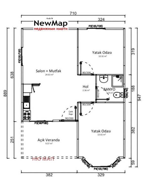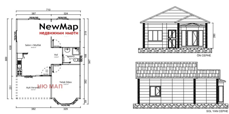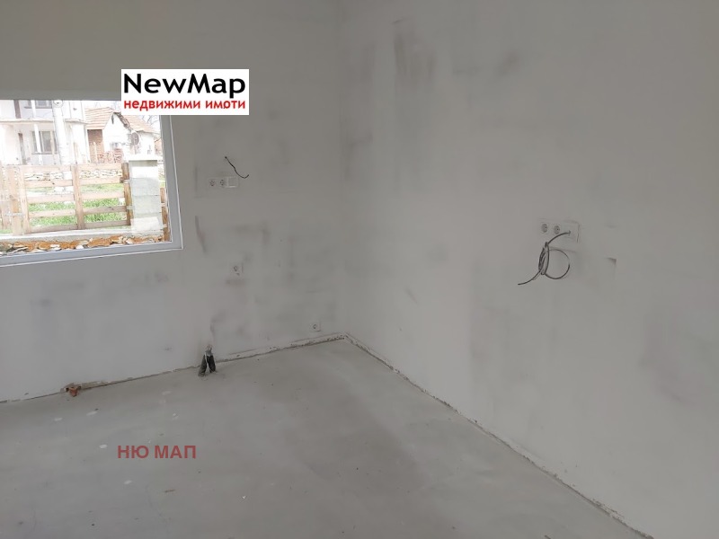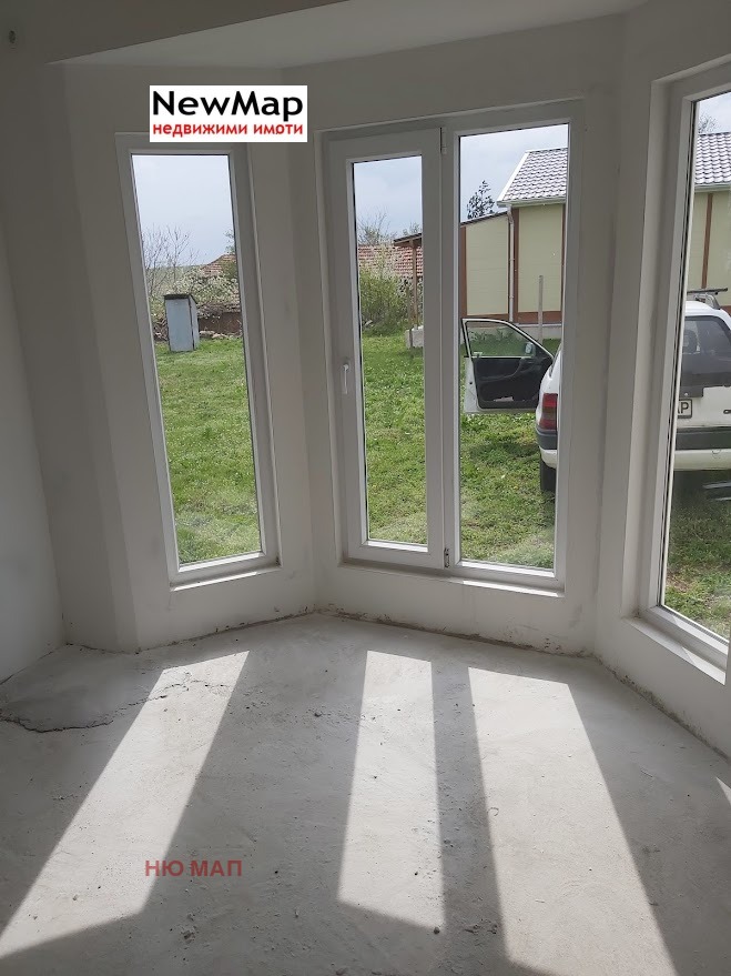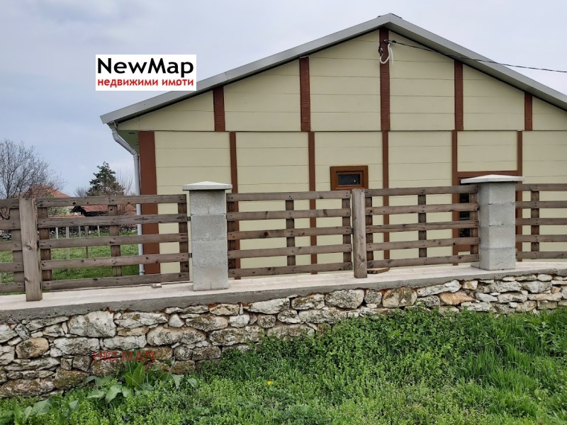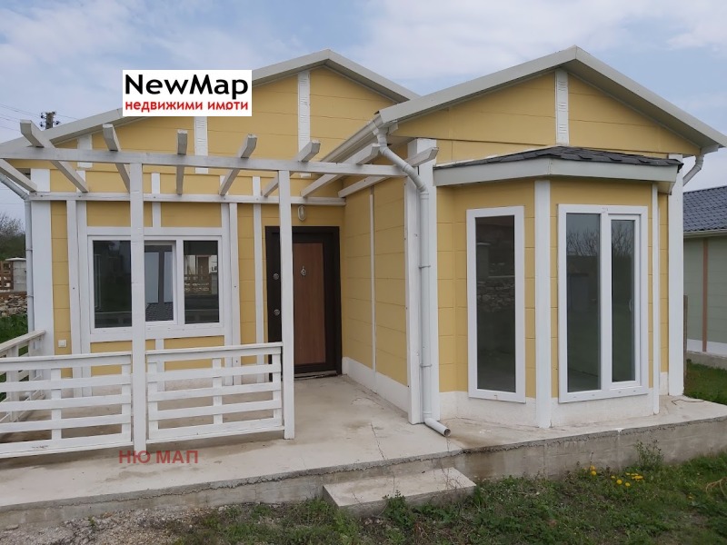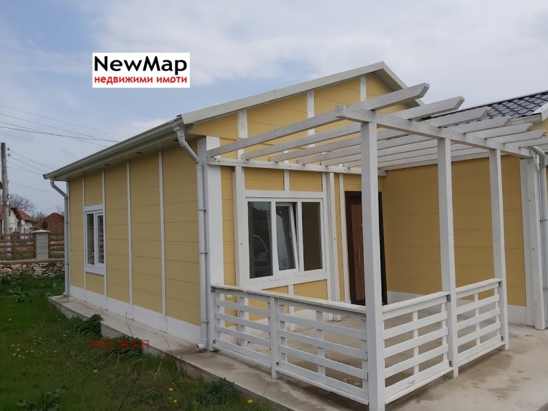 Новопостроена къща със сглобяема конструкция - с одобрен проект, бетонен фундамент, въведена в експлоатация. Състои се от дневна с кухня, баня с тоалетна, две спални. Има изградена допълнителна дървена конструкция за веранда от 10 кв.м. Къщата се продава на фина шпакловка и замазка, с включено обзавеждане на банята. Проектът е изпълнен с подсилени метални профили, готови стенни панели с дебелина 10 см. и