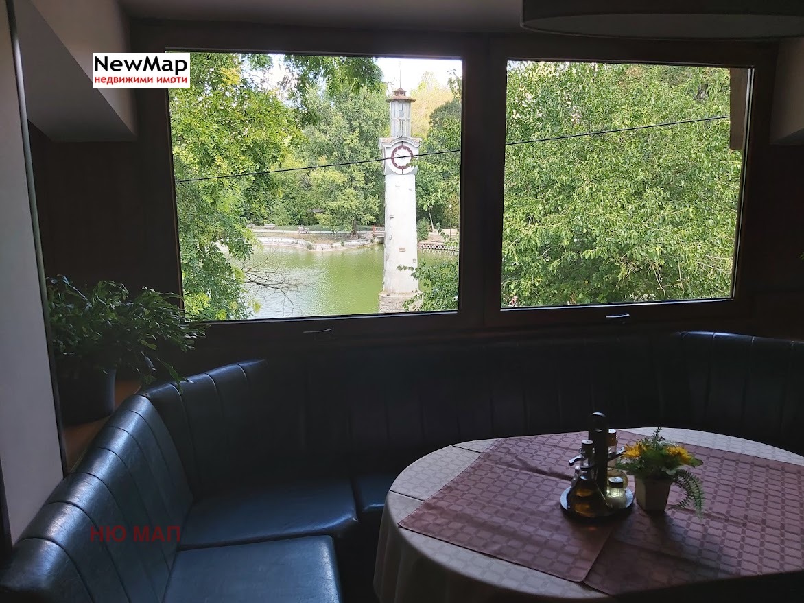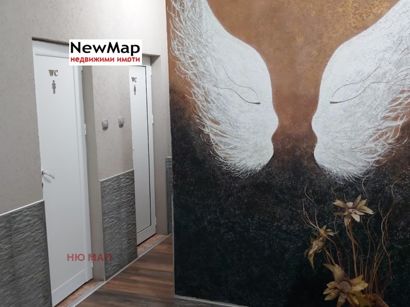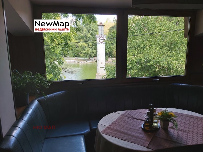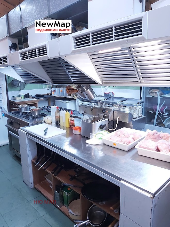 NEW MAP предлага емблематичен за града ресторант с кафе-сладкарница, находящ се в сърцето на парк Кайлъка. Сградата е въведена в експлоатация през 1984 г, основно ремонтирана и обзаведена след 2010 г. Състои се от две нива: на първо ниво със застроена площ от 294 кв.м. са разположени самостоятелна кафе-сладкарница, параден вход към ресторанта, сервизни помещения, битовка, складове, хладилни камери и енергийно стопанство; на второ ниво е основната зала на ресторанта със 100 места, тераса, кухня, 4 тоалетни за клиенти и офис. Във външната тераса е обособена покрита BBQ зона и открита зона за клиенти с над 100 места, която е много прохладна в летните месеци. Ресторантът се продава напълно оборудван и обзаведен с пълното кухненско оборудване и инвентар, обзавеждане и ловен интериор в търговската зала, котел за отопление на пелети с бойлер, соларна система за топла вода, товарен асансьор. Непосредствено до ресторанта е огромния обществен паркинг, езерото с лодките и тенис кортове.