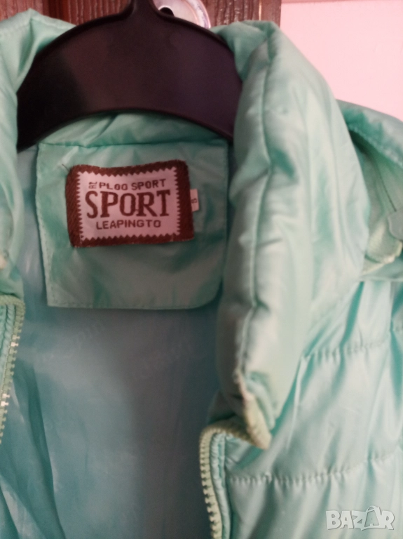 Детско пролетно есенно яке цвят мента със сваляща качулка.Дължина 45 см., ширина 28 см.