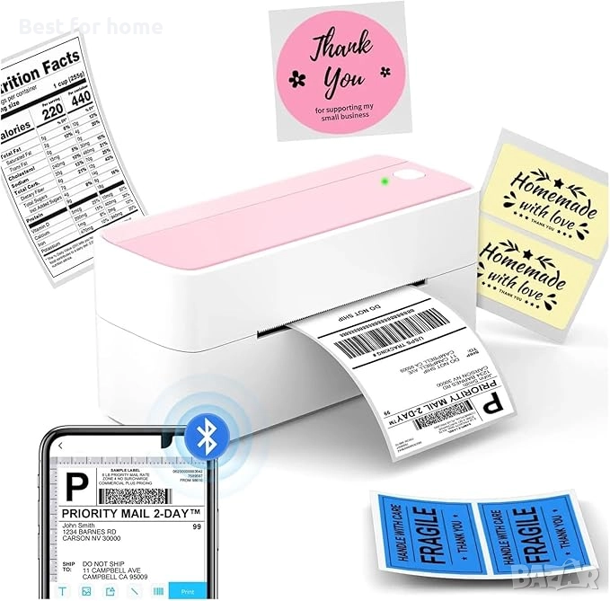 Термопринтер за етикети PM 241 BT, безжичен термопринтер за етикети за малък бизнес, съвместим с телефон и компютър