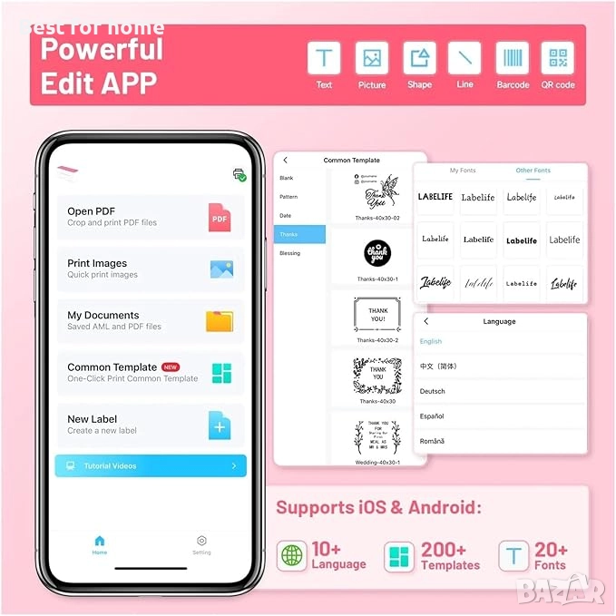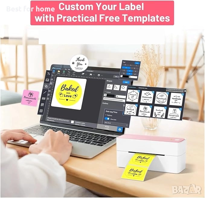 Технология за директен термопечат без мастило или тонер. Висока резолюция (203dpi). Печат с ясен текст. До 60 етикета в минута (150 мм/сек). Печата бързо и безпроблемно. Импортирайте, изрязвайте, персонализирайте шаблоните си за етикети със софтуер.