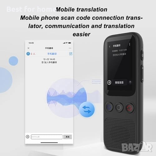 НАМАЛЯВАНЕ НА ШУМА С ВИСОКА РАЗДЕЛИТЕЛНОСТ: Вграденият YNMT двигател за превод на невронни мрежи осигурява по-точни резултати от превода, по-плавен ред на думите в превода, а високоговорителят с намаляване на шума с висока разделителна способност се чува ясно и се превежда по-точно. Устройството не само поддържа запис, но и има вградена памет.