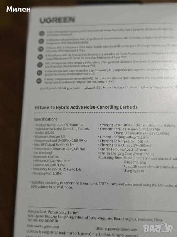 - Модел: UGREEN WS200 HiTune T6;