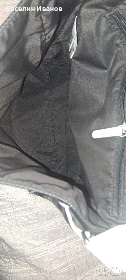 Няма скъсано както от вън така и от вътре . Размери ширина 35 см. Дължина 30 см. ширина 11 см.. Външен джоб с копче тик-так, голямо отделение вътре + джоб с цип.Изпращам с преглед .