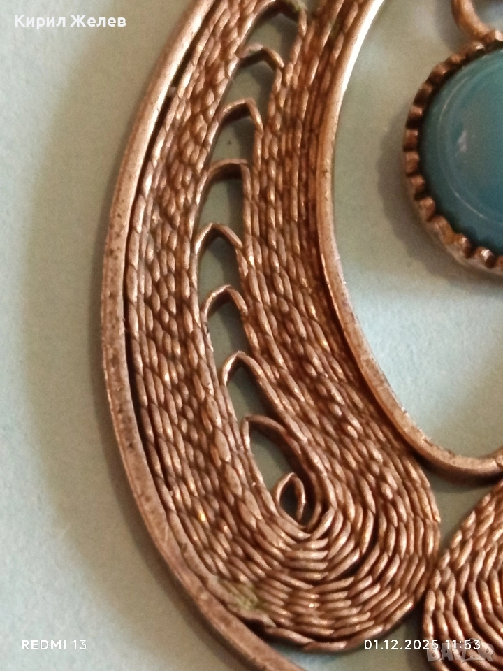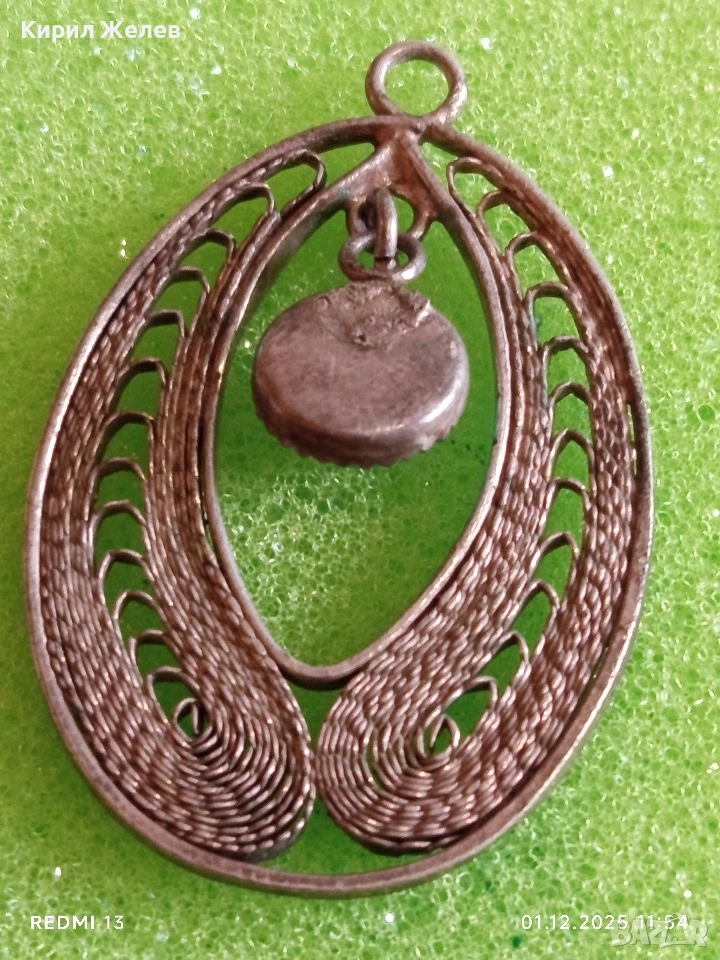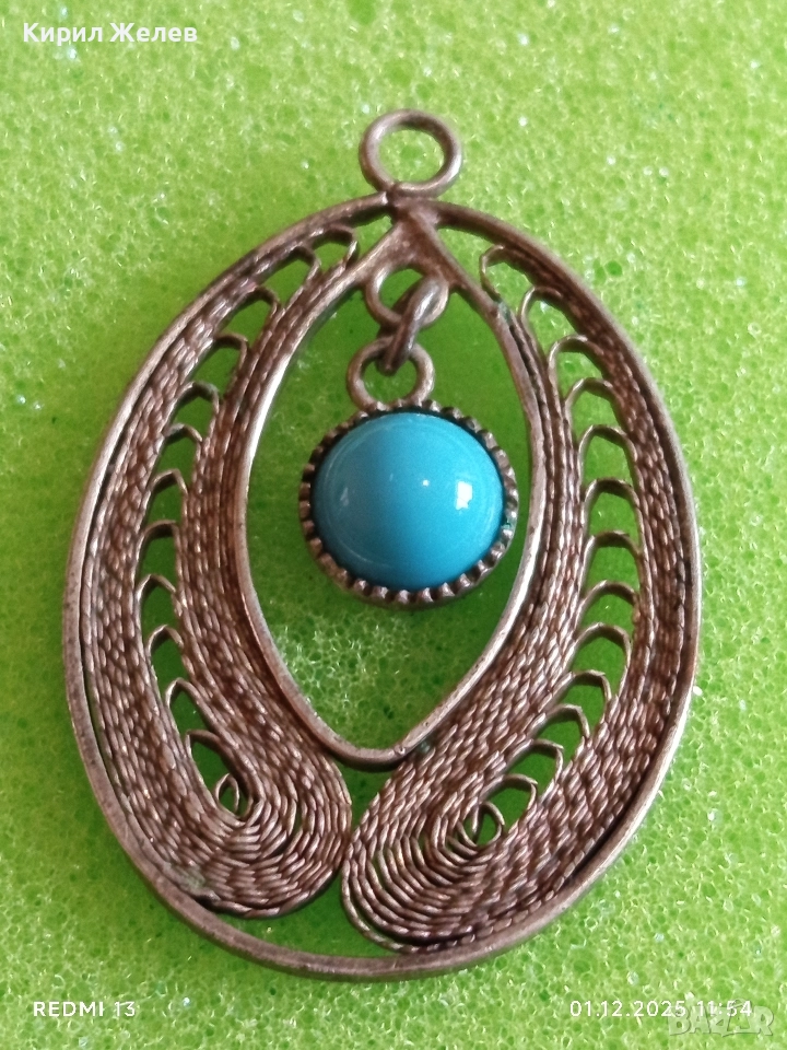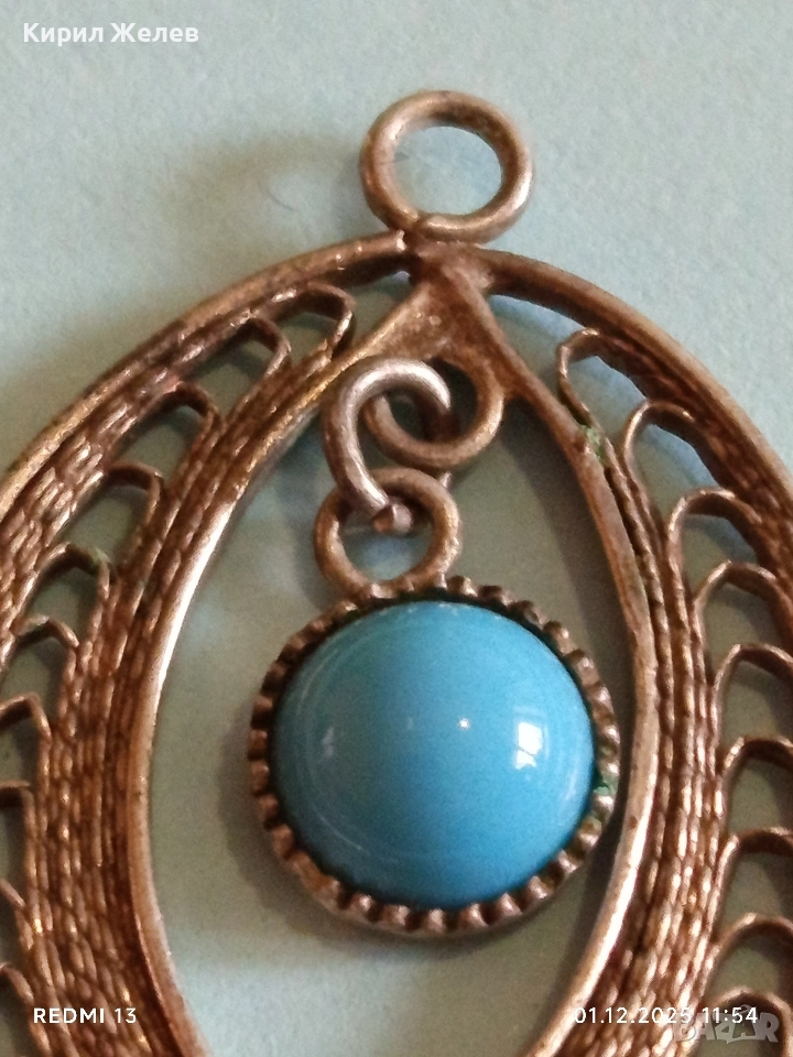 Старинен сребърен филигранен медальон с тюркоаз 41329