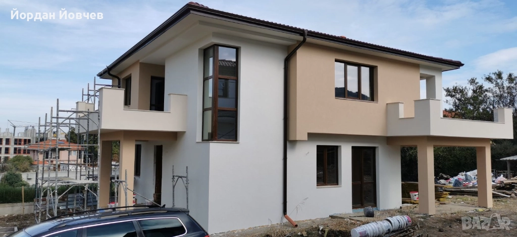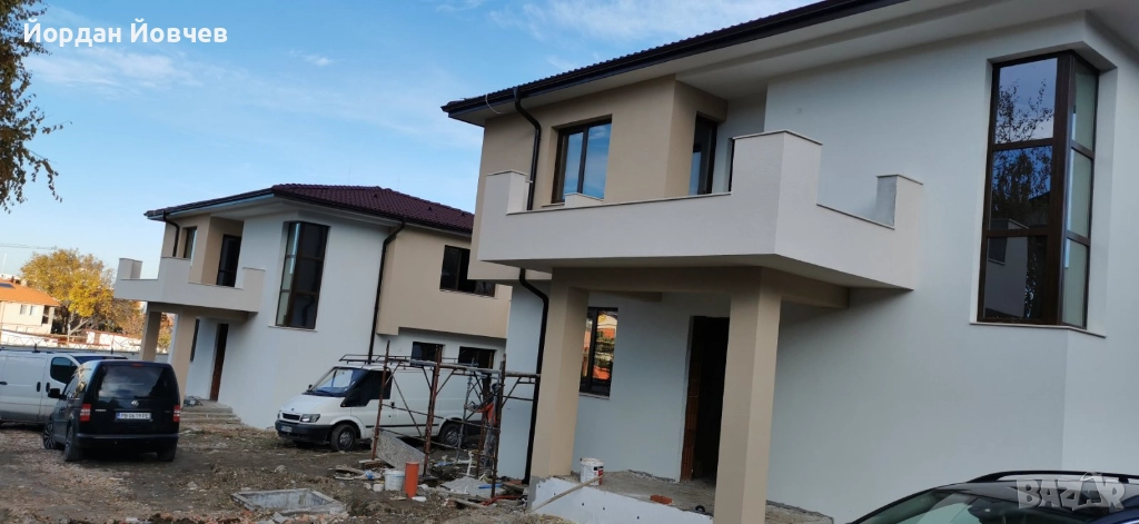 Строеж 2025г., Акт 15, Две къщи, 2 етажа, общо 4 спални, 3 бани с WC, 4 паркоместа, ток с партида, изградена ел. инсталация, вода с партида, изградена ВиК инсталация, дограма-троен стъклопакет ' Кьомерлинг ', външна изолация. Продажба от собственик. Три паркоместа, самостоятелен парцел