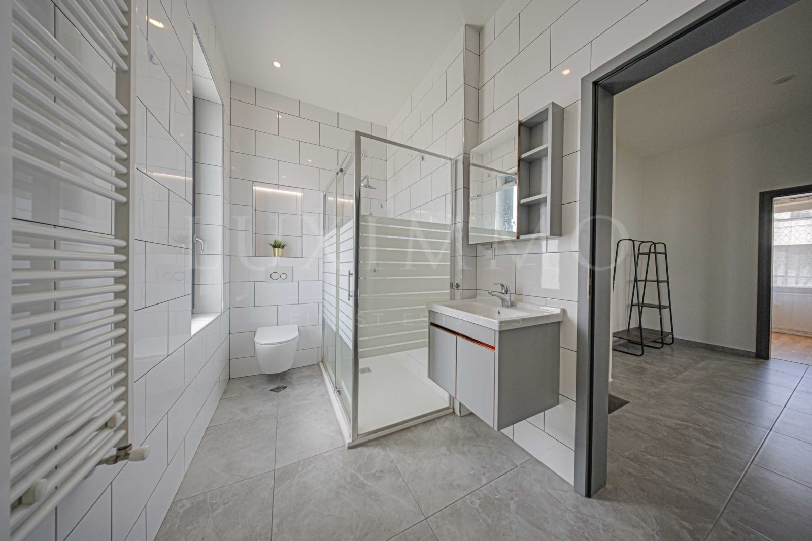 Италиански широкоформатен гранитогрес в дневната и коридора и трисловен паркет в спалните; Стени латекс;