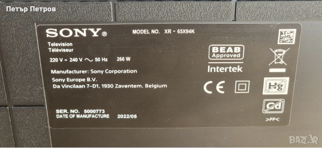 Sony XR-65X94K Full Array, LED телевизор (65 инча (164 см), 4K UHD, HDR, Smart TV, гласово управление (Alexa, Google Assistant), функция за запис, 100 Hz, Google TV, когнитивен процесор XR)