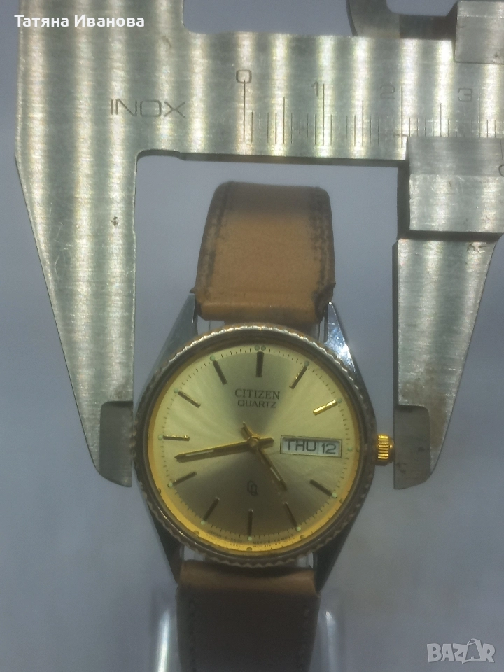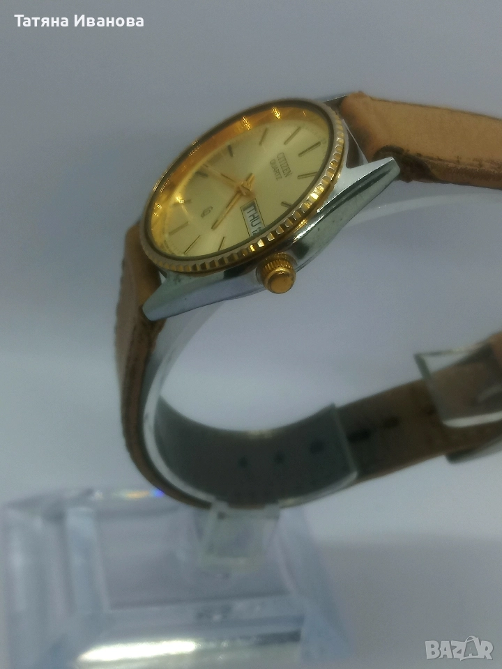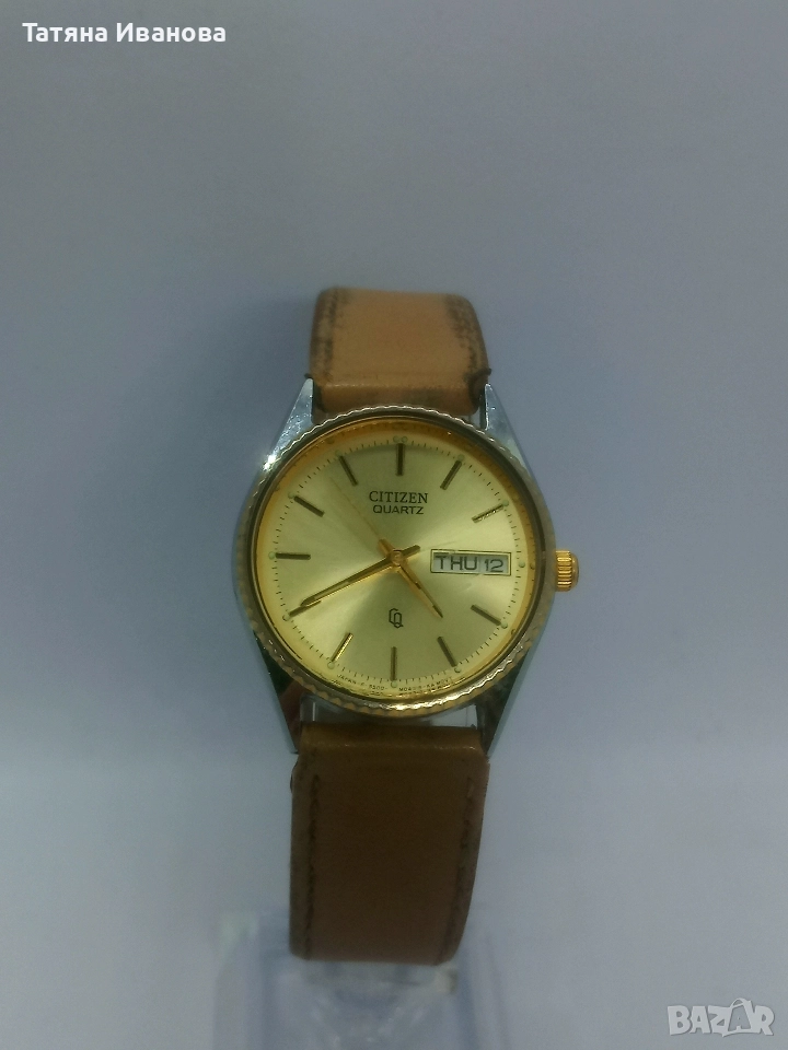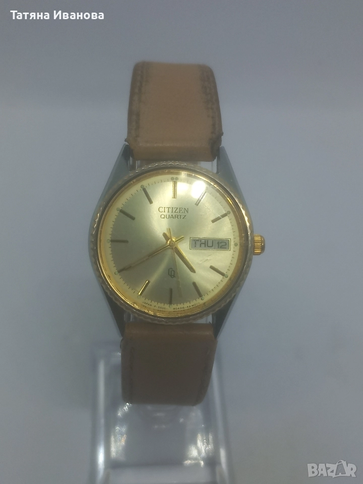 Citizen quartz,ден и дата.Каишка от естествена кожа.Работи коректно.Добър външен вид.