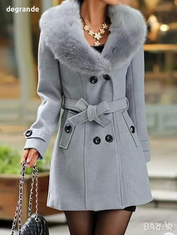 Дамско палто с богата яка Бало Черно Бежаво Кафяво → Обява 52606464