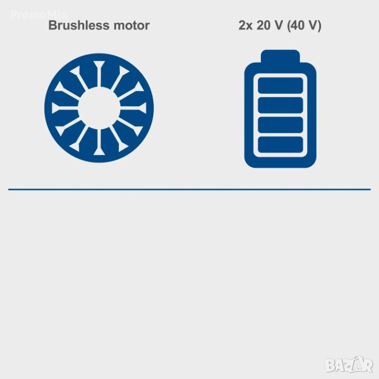 - Батерия Li-ion: 2 бр х 20V (40V) / 2.0 Ah или 4.0 Ah (не са включени)