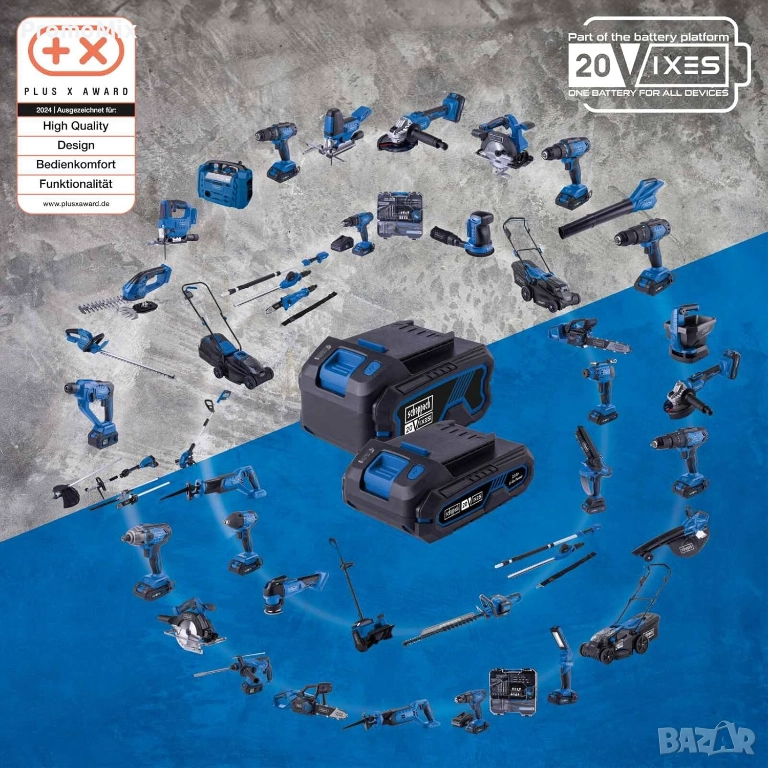 * Възможност за добавяне на комплект двойно зарядно + 2 батерии (20V Li-ion /2.0Ah) цена: 70.оо лв!