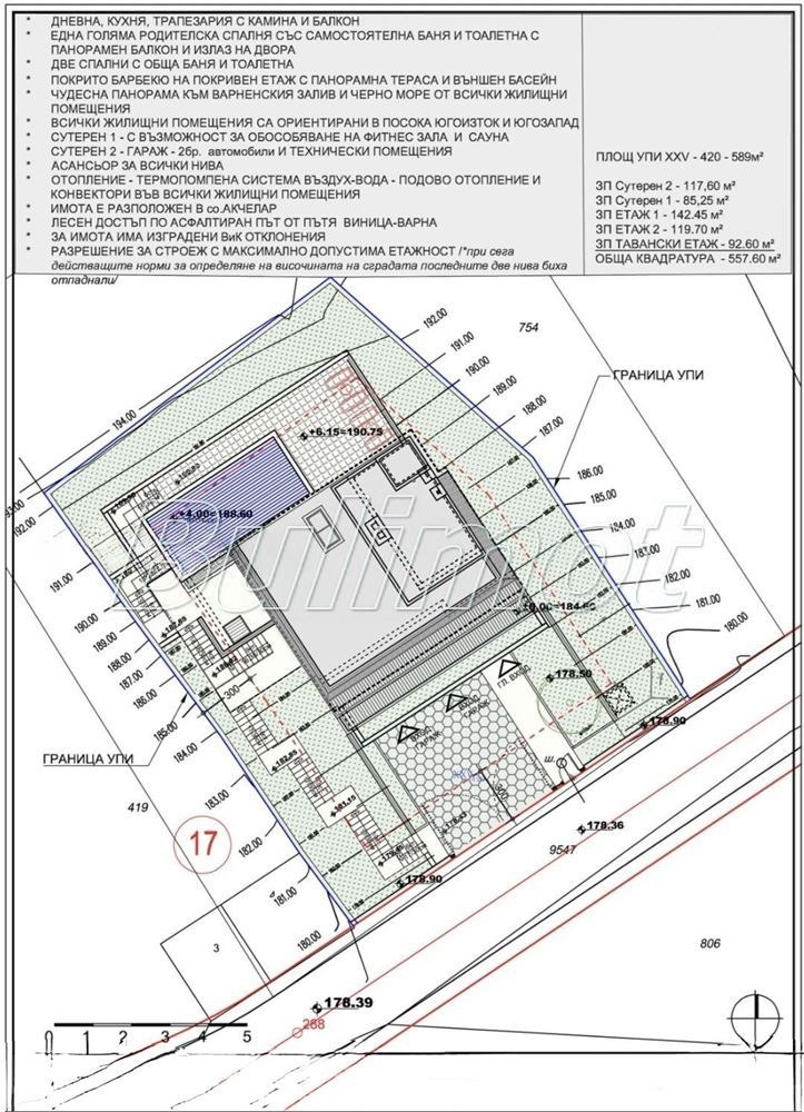 🏡 С разрешително за строеж на еднофамилна жилищна сграда рпз 589м2 на 5 етажа с лифт, басейн до 100м3, нескриваема панорама от кота 0. Много лесен достъп,ЕЛ,Новоизграден частен водопровод и канализация до границата на имота.