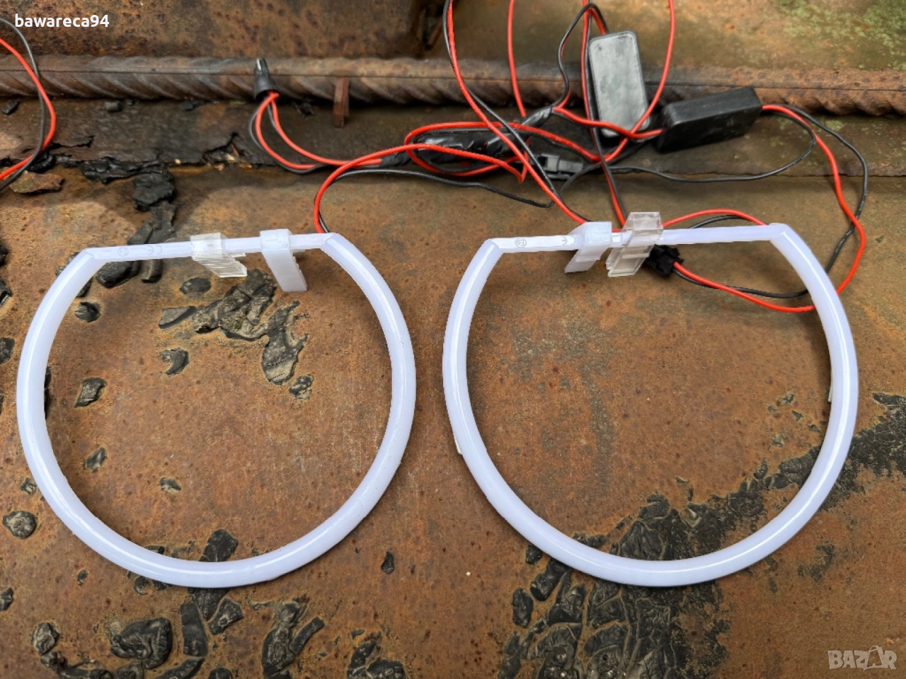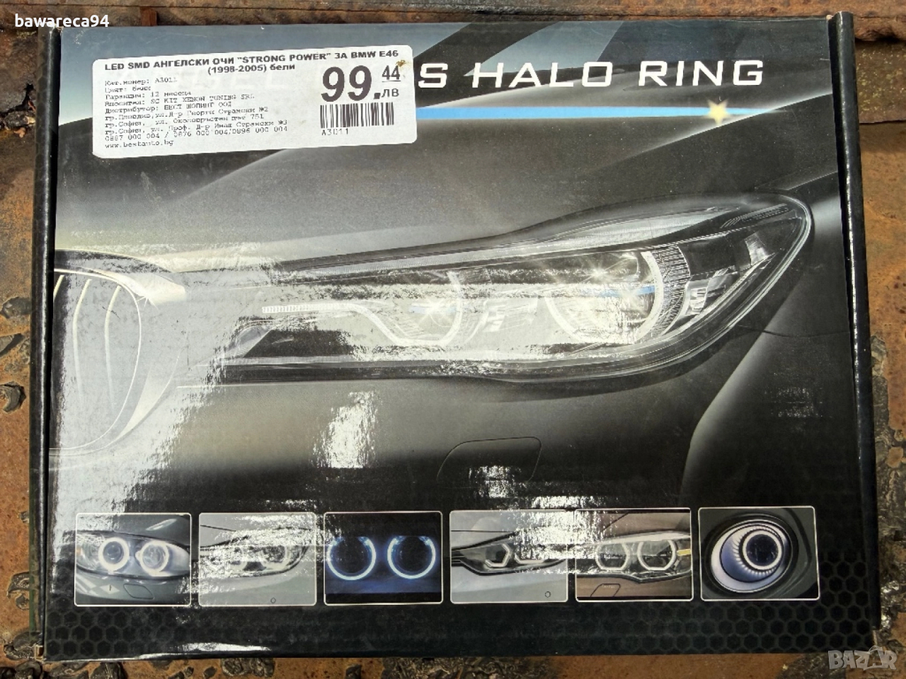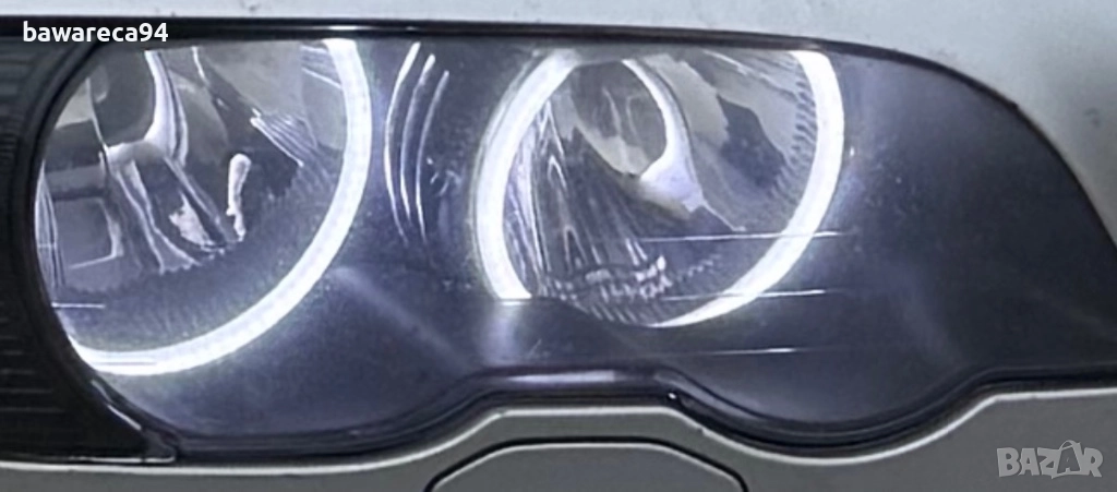 LED SMD strong power ангелски очи бяла светлина (доста са силни) за BMW E46 за рефлекторен фар. Ползвани са 3 месеца на кабрио, със сигурност стават и за купе. За седан и комби трябва да се провери. Махнах ги защото сложих ксенонови фарове и тези не стават за ксеноновите фарове. Закупувани са от Бест Ауто и са качествена изработка.