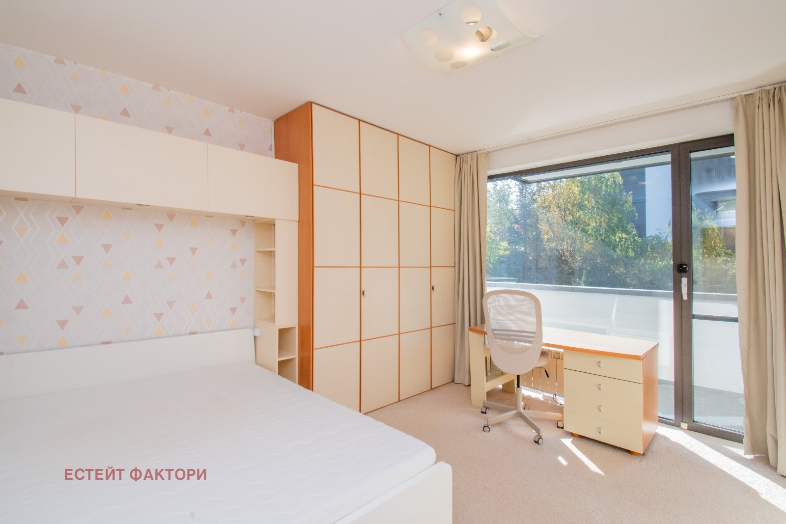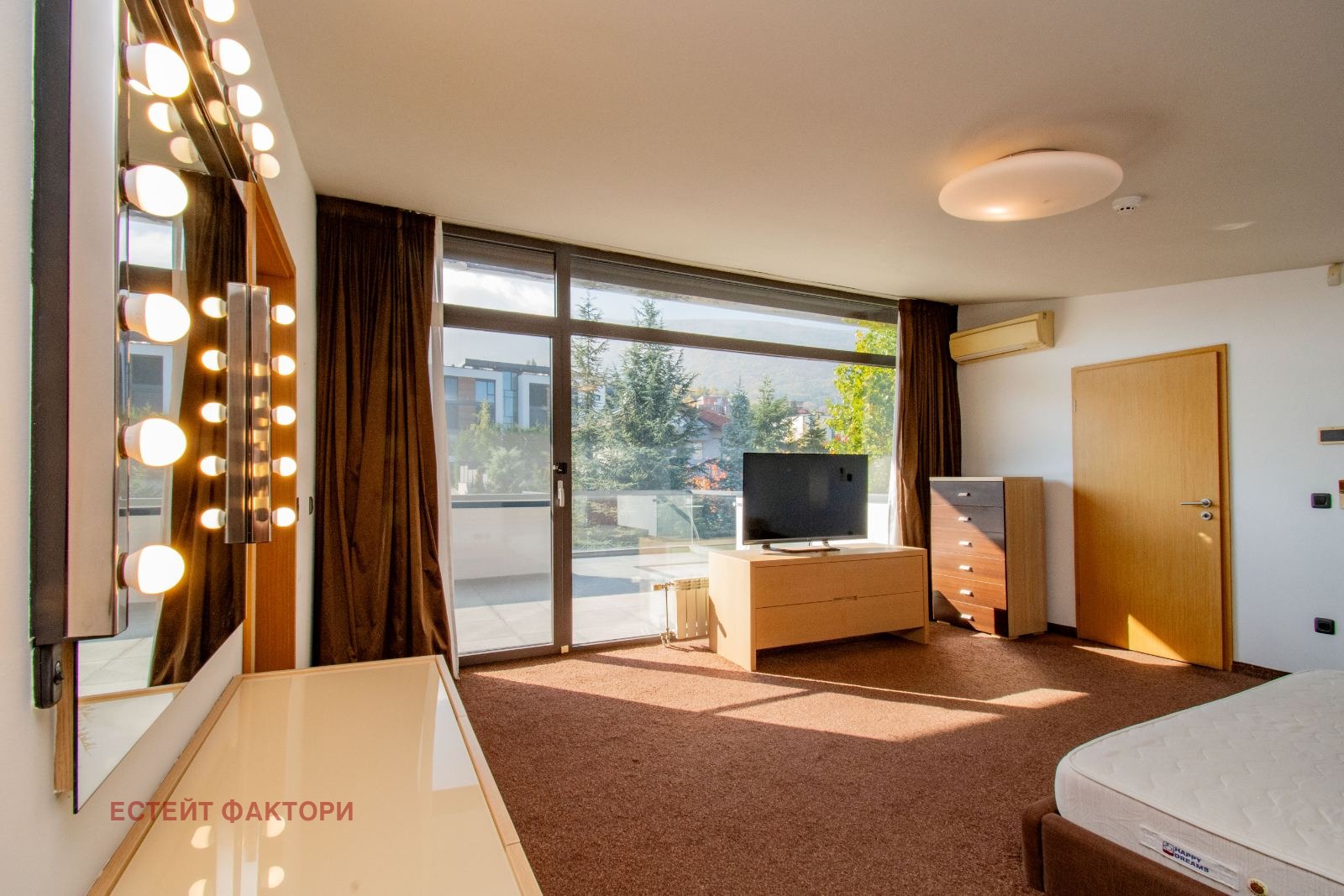 Трети етаж: просторна родителска спалня със собствена баня със санитарен възел, дрешник и панорамна тераса към Витоша.