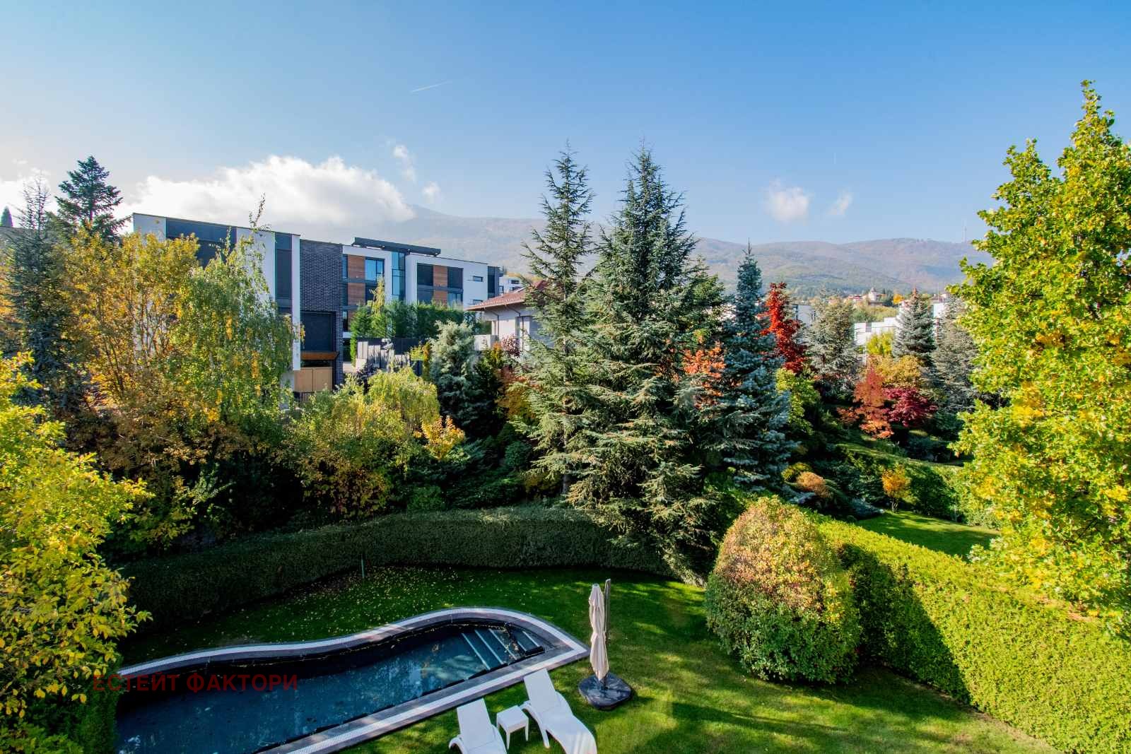 Къщата е с прекрасно аранжиран озеленен двор, гарантиращ индивидуалност и дискретност. От него и от всички помещения се открива прекрасна гледка към планината.