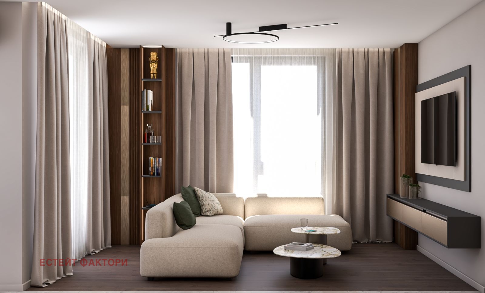 'Estate Factory' продава много слънчев и просторен апартамент с две спални в нова бутикова сграда в кв. 'Манастирски ливади-изток'. Застроена площ на имота: 88.38 кв.м. Етаж: 4/9. Изложение: юг/запад. Състои се от: Светла дневна с обособена кухненска и трапезна зона, две спални, две бани със санитарен възел, коридор и тераса. Има възможност за закупуване на подземно паркомясто.