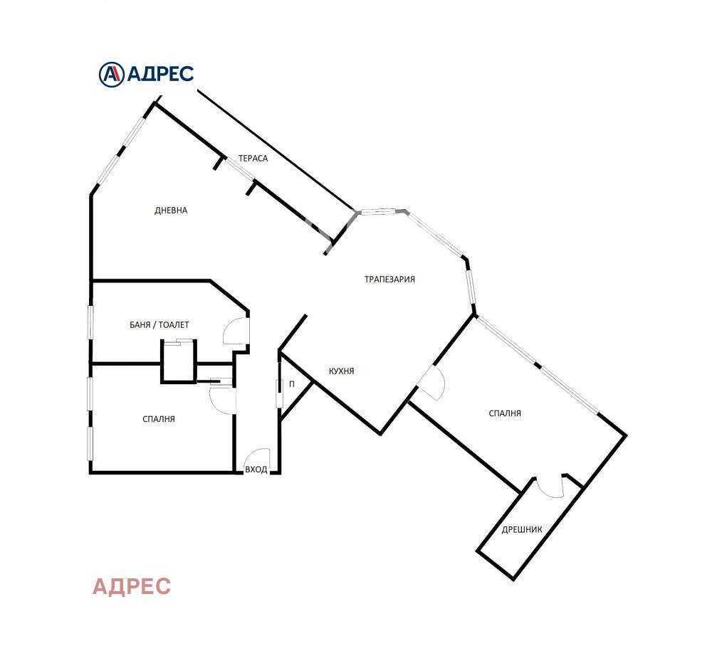Разпределение: входно антре, просторен дневен тракт с тераса, две светли спални (едната от които с дрешник), баня с тоалетна, перално помещение.