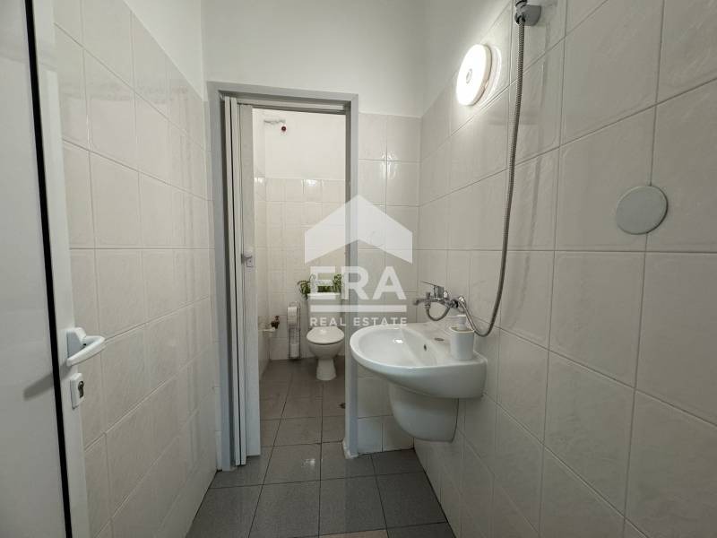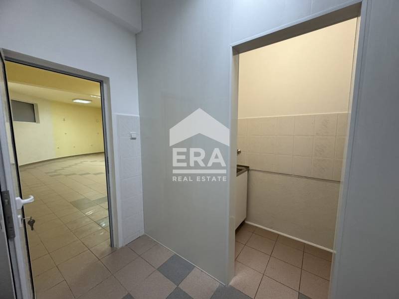 Търговското помещение разполага със собствен санитарен възел и допълнителна стая с бокс подходяща за кухненски кът, мокро помещение или съблекалня