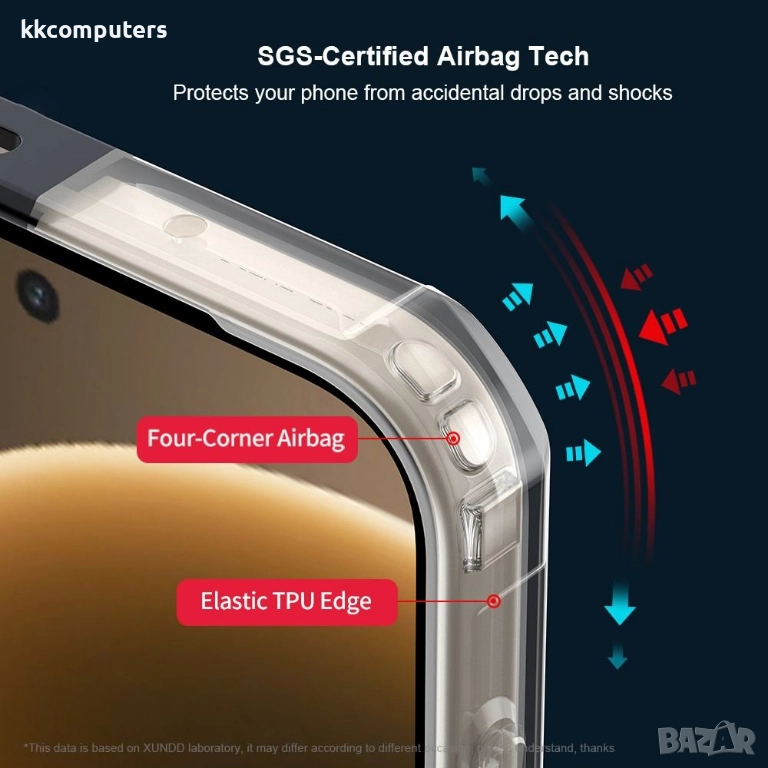 Всестранна защита с Airbag технология: Комбинацията от твърд акрил и мек TPU рамка създава сигурна защита. Вградените въздушни възглавници активно поглъщат енергията от удари и падания, предпазвайки екранa и вътрешните компоненти на телефона Ви.