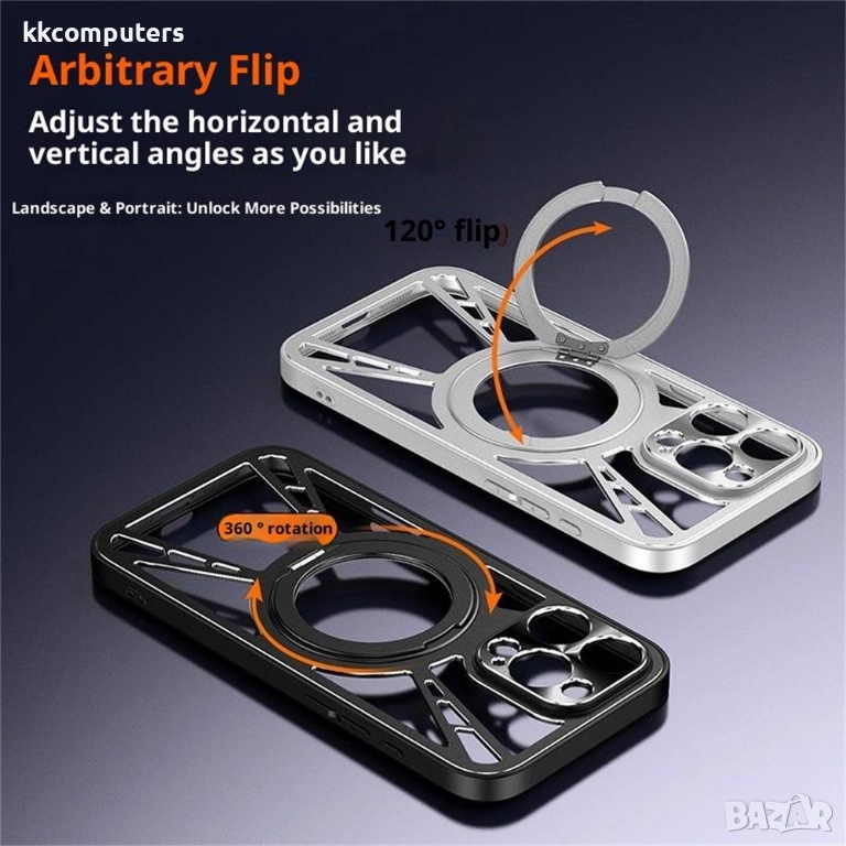 Вградена въртяща се стойка: Насладете се на видео, видеоразговори или работа без ръце. Интегрираният ротационен пръстен предлага 360° гъвкавост за оптимален ъгъл на виждане както в портретна, така и в ландшафтна ориентация.