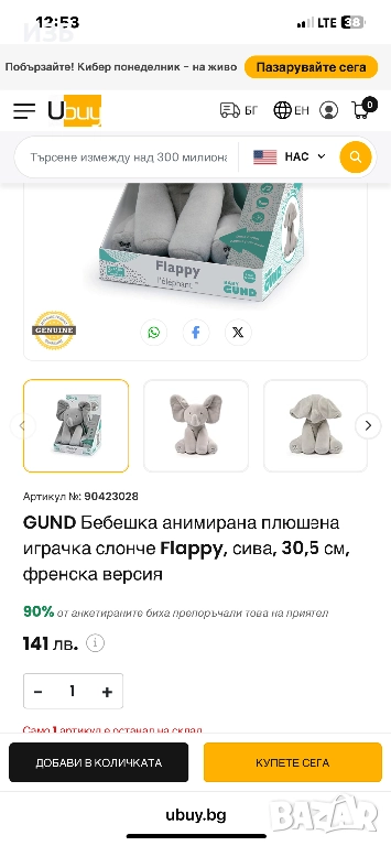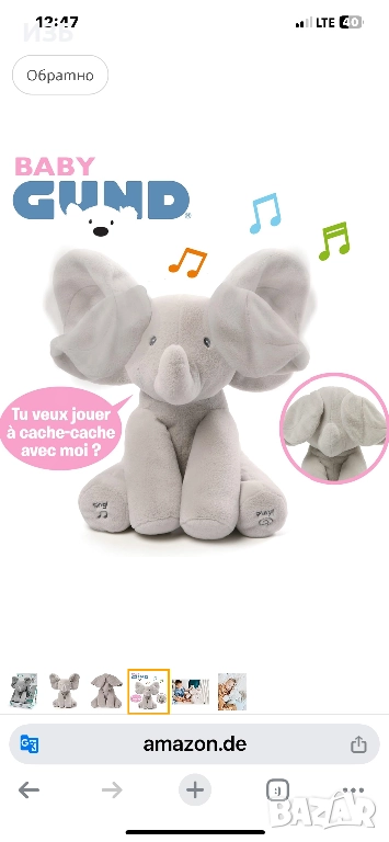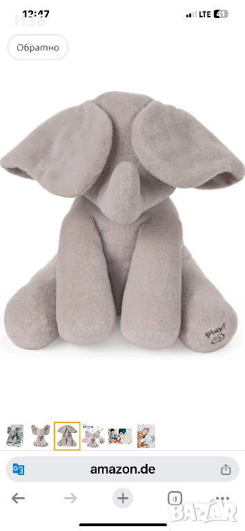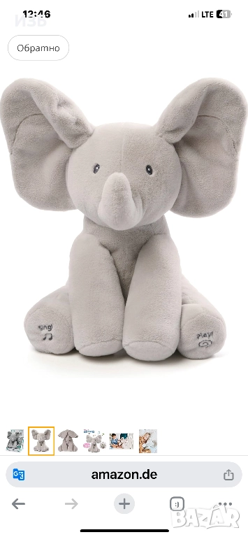 Бебешка играчка + 10 месеца – Интерактивната плюшена играчка Flappy the Elephant е играчка за малки деца от 10 месеца; плюшеният материал позволява лесно почистване на повърхността.За Пловдив и София може лично предаване