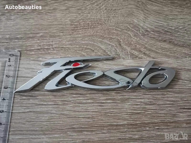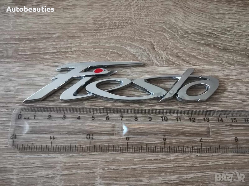 Нов надпис в сребристо за модела Fiesta на Ford. Размерите са дадени на снимките.