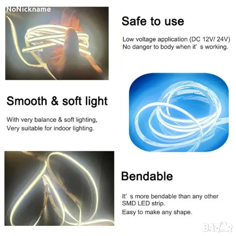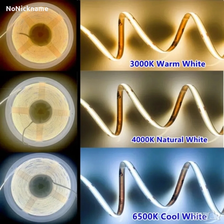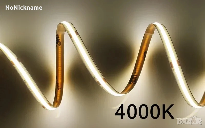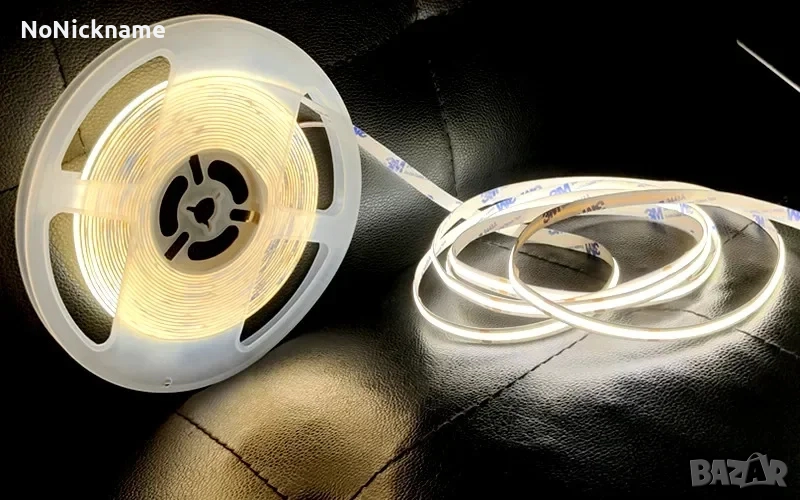 5М, 4000K, LED COB лента 8мм с DC 12V щепсел 2-пинов кабел димируема линейна светлина декорация → Обява 52611100