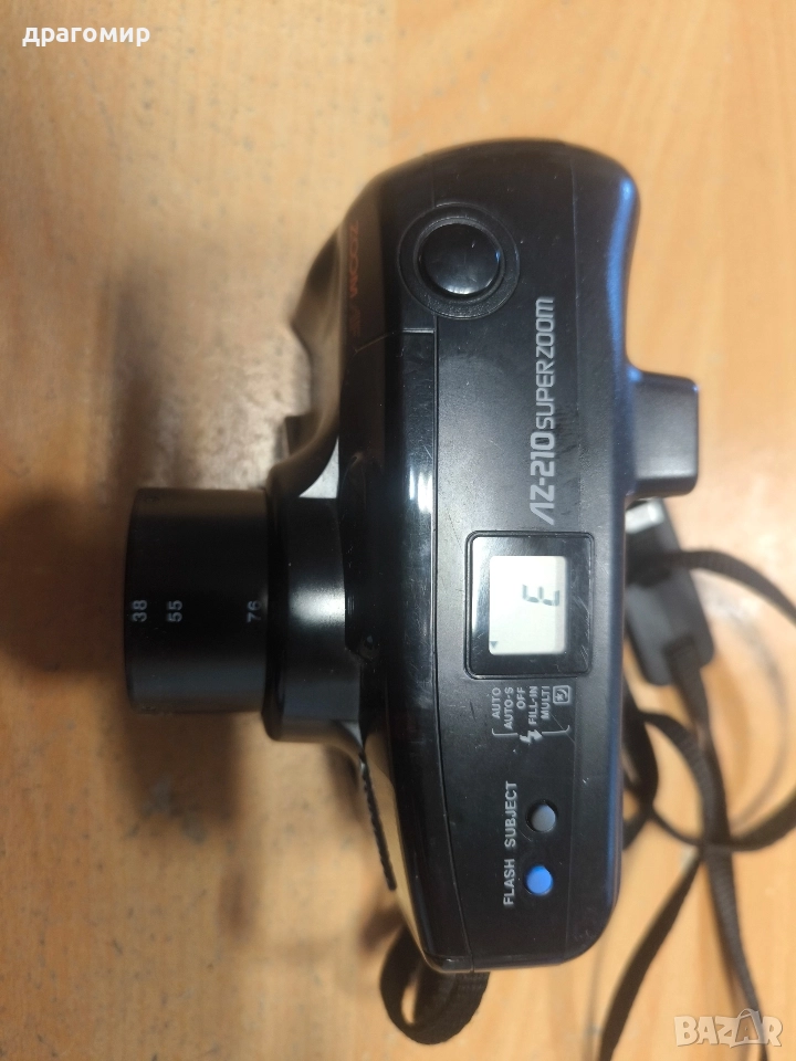 продавам лентов фотоапарат, работи,с кожен калъф, OLYMPUS AZ-210 SUPER ZOOM AF, работи с две батерии CR123A,продава се без батерии, имам още много други фотоапарати, камери, обективи, чанти, светкавици, батерии, зарядни устройства, касети, филтри, ремъци, ленти, при закупуване на повече неща отстъпка