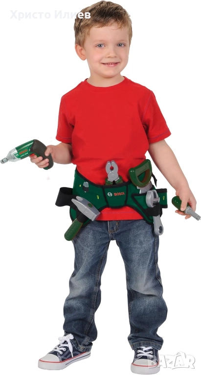 - Коланът с инструменти Bosch е пълен с полезни инструменти за игра