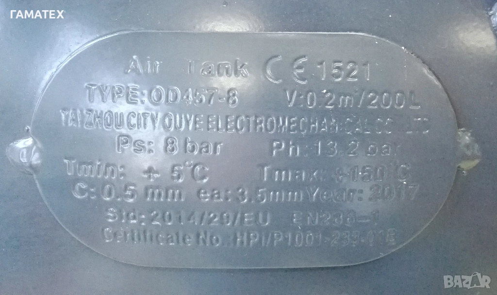 Танк за въздух от висококачествена стомана, сертифициран за високо налягане.