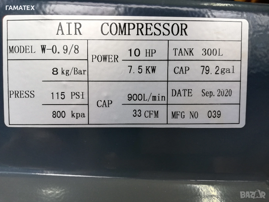 300 л Бутален трифазен компресор с ремъчно задвижване, 51022
