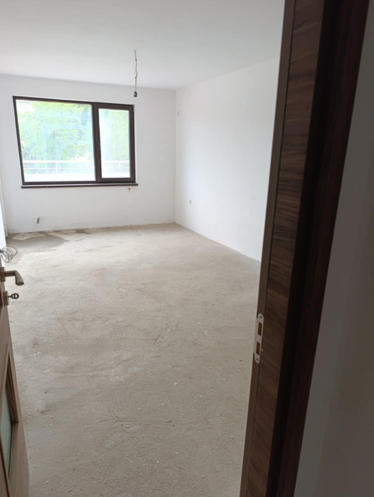 Предлагаме двустаен апартамент в нова сграда с акт 16 в близост до у-ще 'Йордан Йовков', в близост до много търговски обекти, детска градина, спирки на градски транспорт,и много други удобни обекти в района. Жилището е на първи висок /над гаражи/етаж, с източно изложение, вътрешно и с разпределение : коридор, кухненски бокс с просторна всекидневна, спалня,баня и тоалетна с голяма тераса на която има излаз от двете стаи, на шпакловка и замазка, с интериорни врати, висок клас дограма, отлично подържани общи части на входа който е с контролиран достъп, паркинг за живущите. Светло, просторно с много добри локация и комуникации.