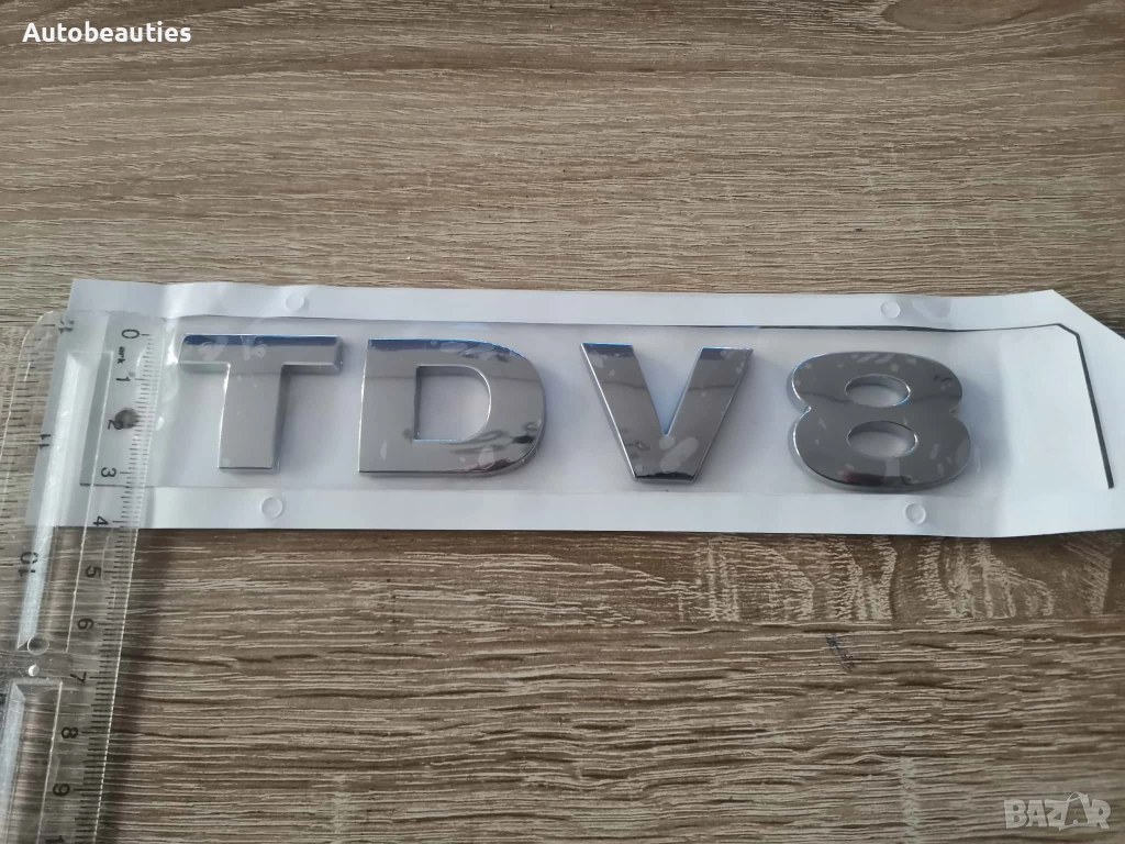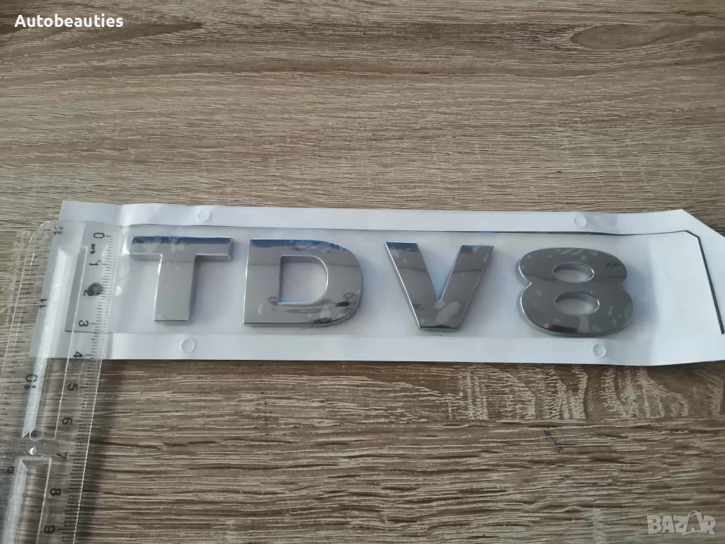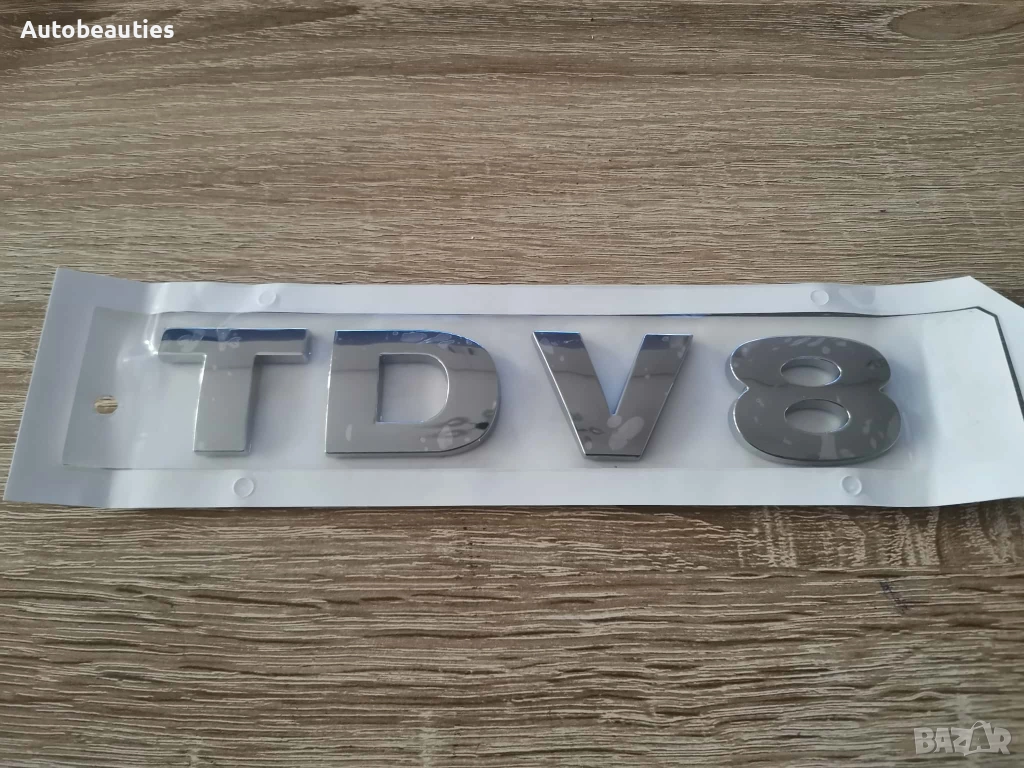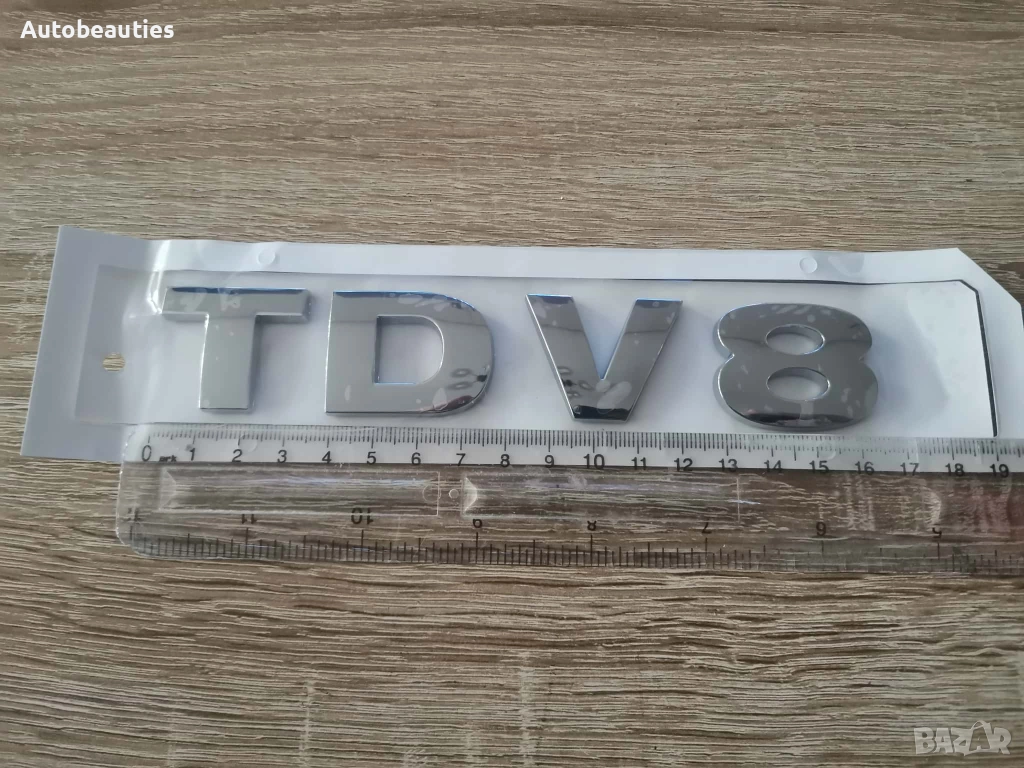 Нова емблема за модела TDV8 на Range Rover в сребрист гланц. Размерите са дадени на снимките.