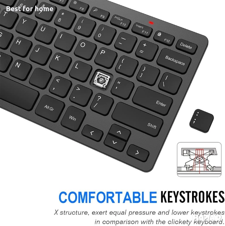 Компактен дизайн: X-образната структура на ножиците ви осигурява комфортно писане, а нископрофилните клавиши предлагат тихо и удобно писане.