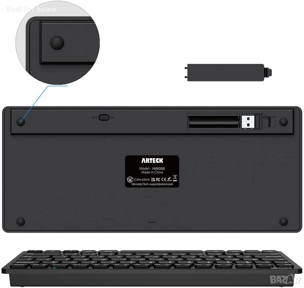 Arteck 2.4G безжична клавиатура, ултра тънка и компактна