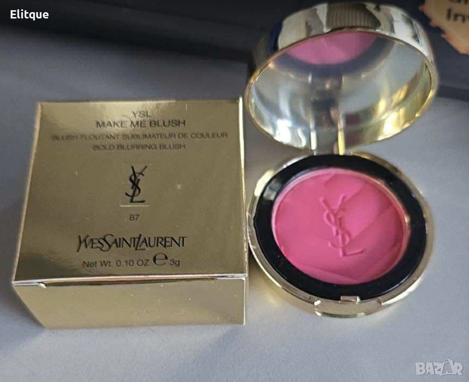 YSL Make Me Blush от Yves Saint Laurent. Това е руж за лице, който се предлага както в течна, така и в прахообразна форма. Това е "bold blurring blush" (смел замъгляващ руж), който помага за прикриване на несъвършенствата. Формулата е проектирана да бъде дълготрайна, като някои варианти предлагат до 24 часа издръжливост. Цена:60лв Еконт/Спиди/BoXNow/Sameday