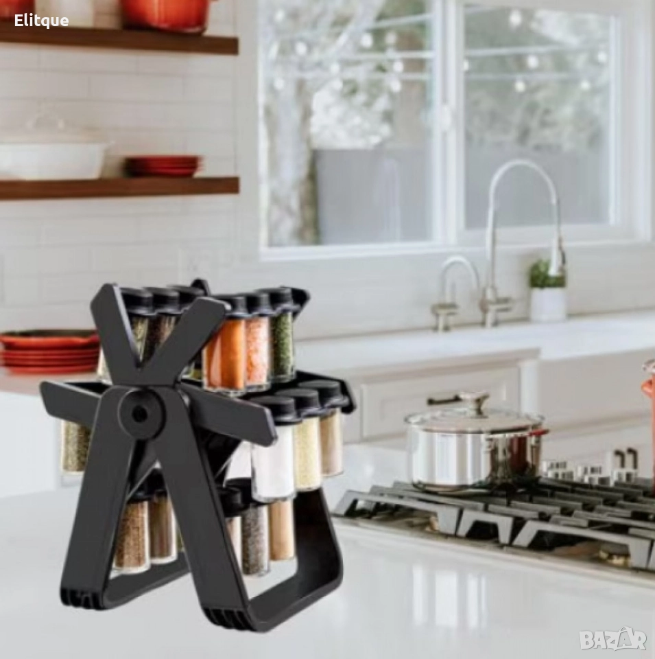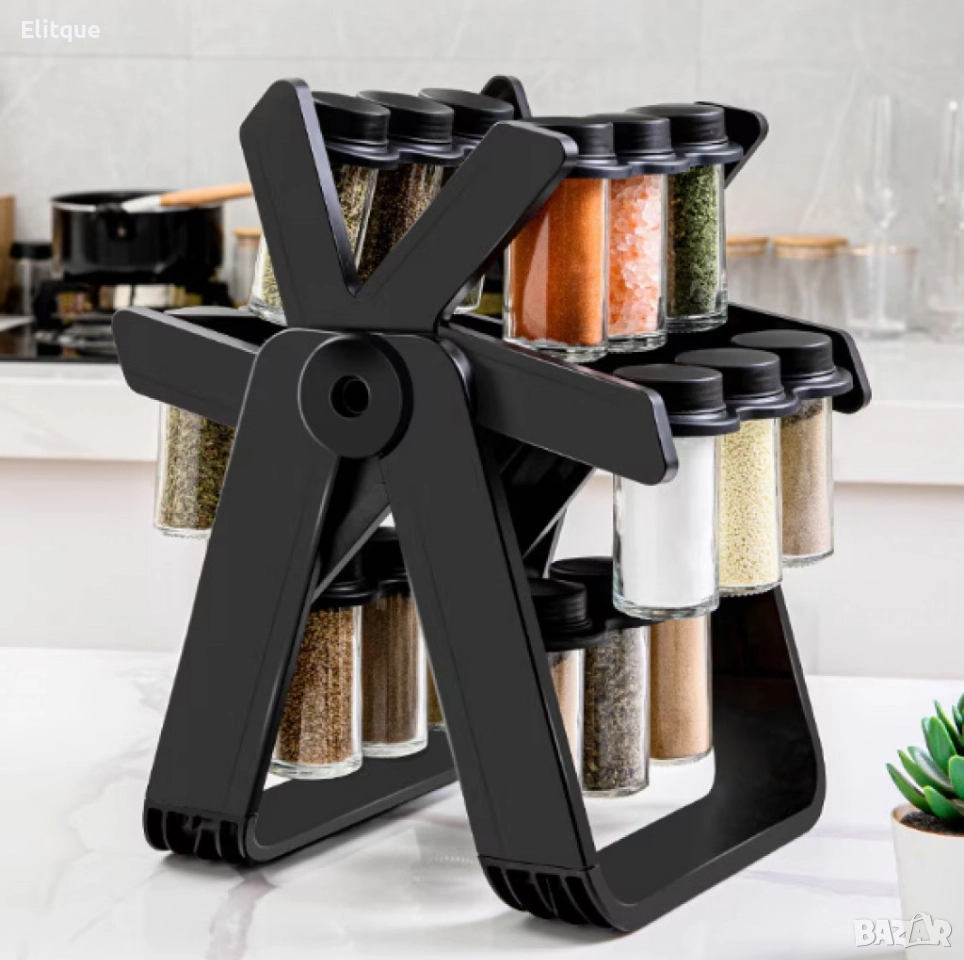 Стилен въртящ се органайзер за подправки,стъклени бурканчета,18 части